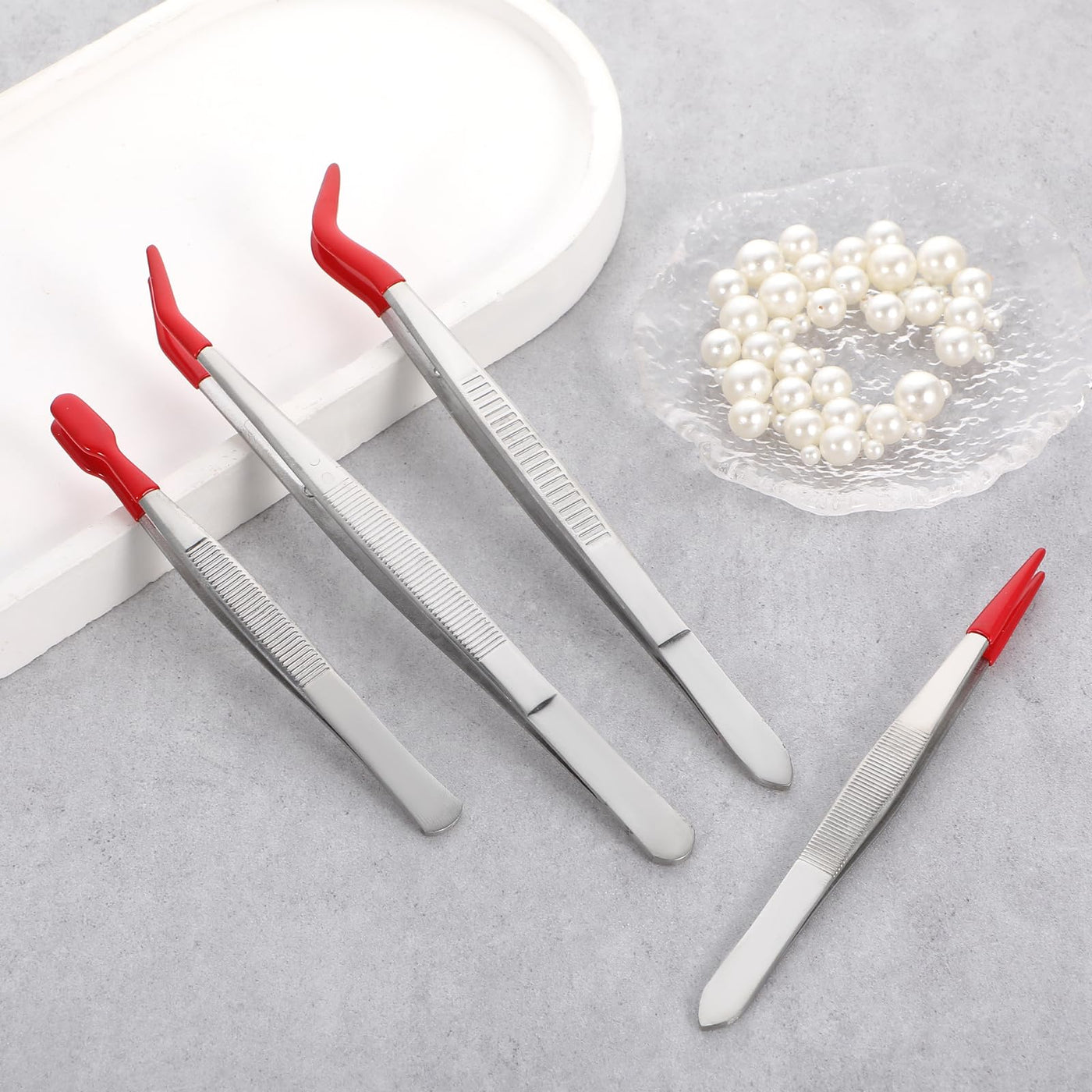 Product name: 4 pieces stainless steel long tweezers for arts and crafts Material: Stainless steel Color: silver red Packing list: 4 pieces sticker tweezers for Journaling
