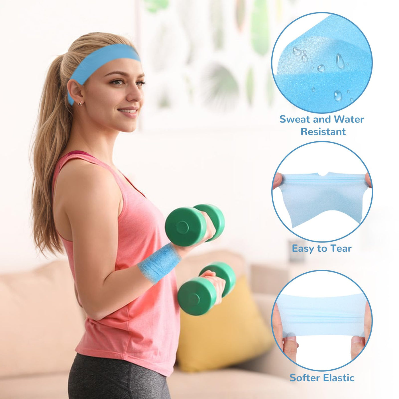 - Sweat-Resistant & Skin-Friendly: Made with gentle, non-irritating materials that wick away sweat, keeping your skin dry and comfortable. Hypoallergenic and latex-free for safe use on sensitive skin