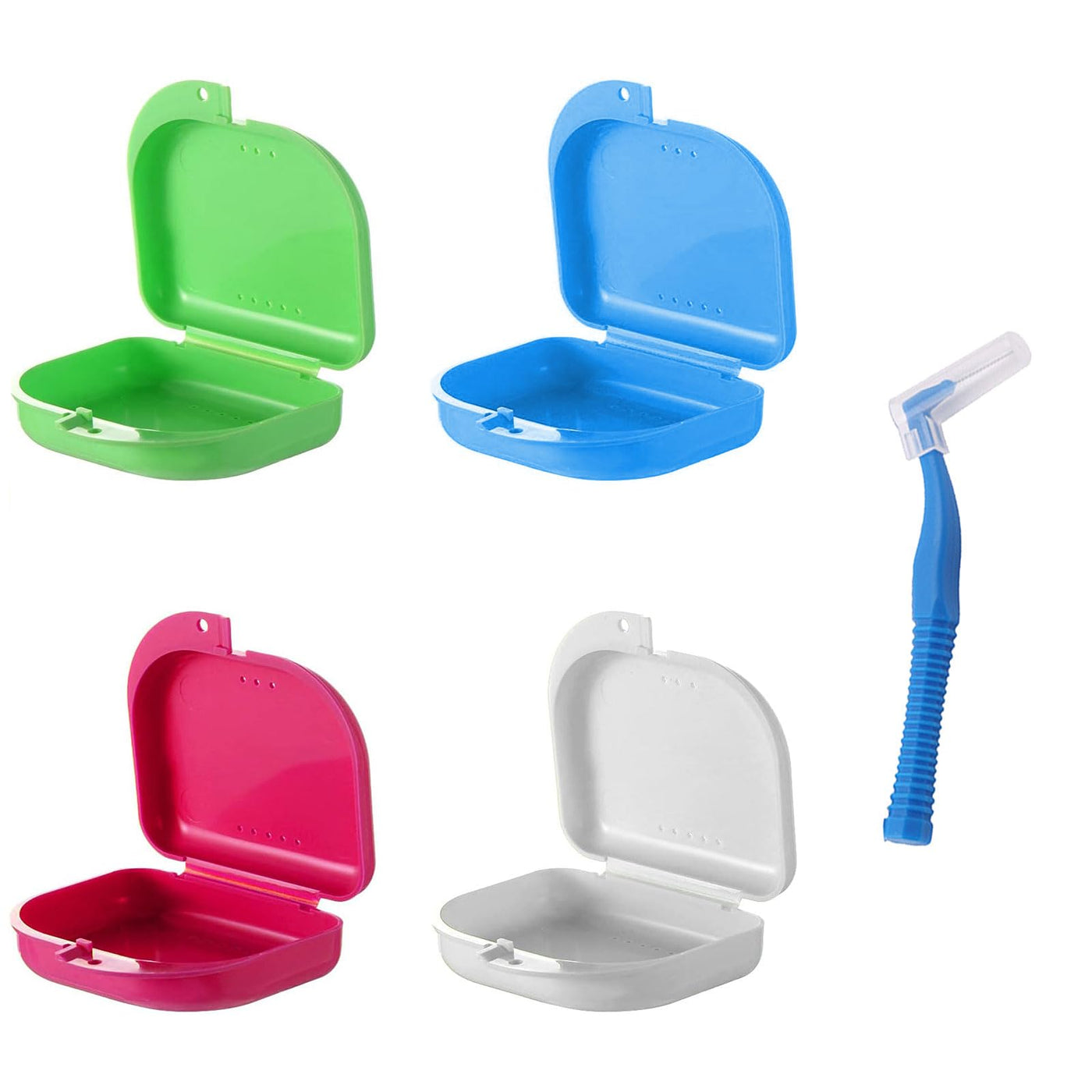 4 x mouth guard box, braces box, glitter braces box, children's funny braces box, braces box for loose braces, modern denture box, denture box, interdental brush