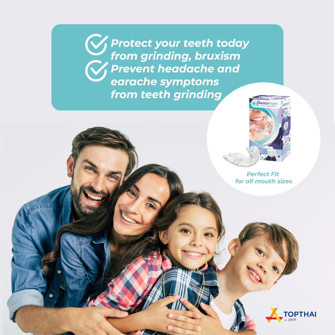 Help cushion tooth-to-tooth contact from nighttime grinding and clenching with the DentaRight 5-Pack Mouth Guards. Each boil-and-bite guard is made from BPA- free, phthalate-free thermoplastic that molds at home to your bite for a secure, custom-feeling fit.The set includes three size models—1 of Model 01 regular (3.0 mm), 2 of Model 02 heavy-duty (6.0 mm), and 2 of Model 03 small (3.0 mm)—so you can choose the cushioning level that feels best. Each set includes a protective storage case plus a step-by-step manual and video guide to make at-home fitting straightforward.Designed for durability and daily use, these reusable night guards help cushion contact while you sleep or during brief daytime wear. Each guard can be trimmed for a precise feel and is easy to clean for everyday freshness. Backed by responsive DentaRight support for molding or product questions, this complete variety pack offers a practical, at-home way to stay comfortable and confident.