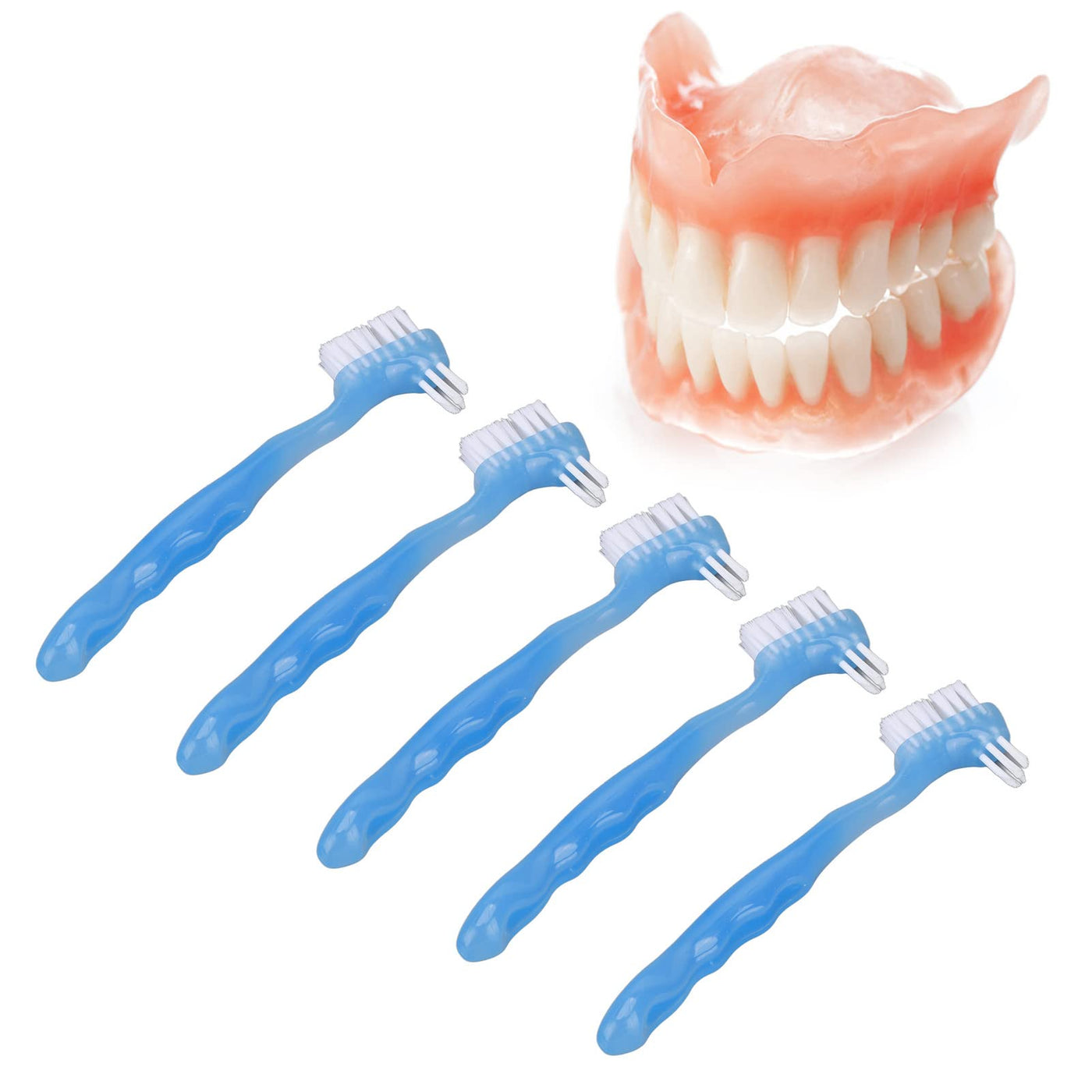 5pcs Denture Brush Set, Double Head Professional Denture Cleanning Travel Portable Double Sided False Teeth Cleaning Brush(Blue)