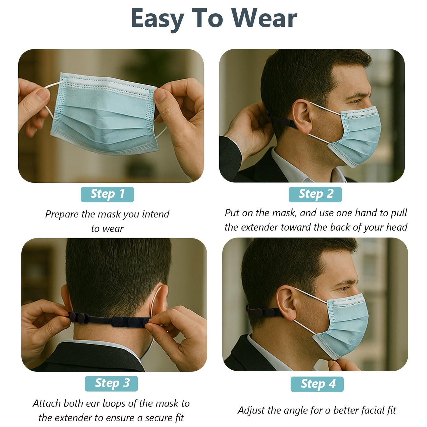 - Just loop one end of your mask strap through a hook on the extender, secure the other side, and enjoy instant comfortno complicated setup required.