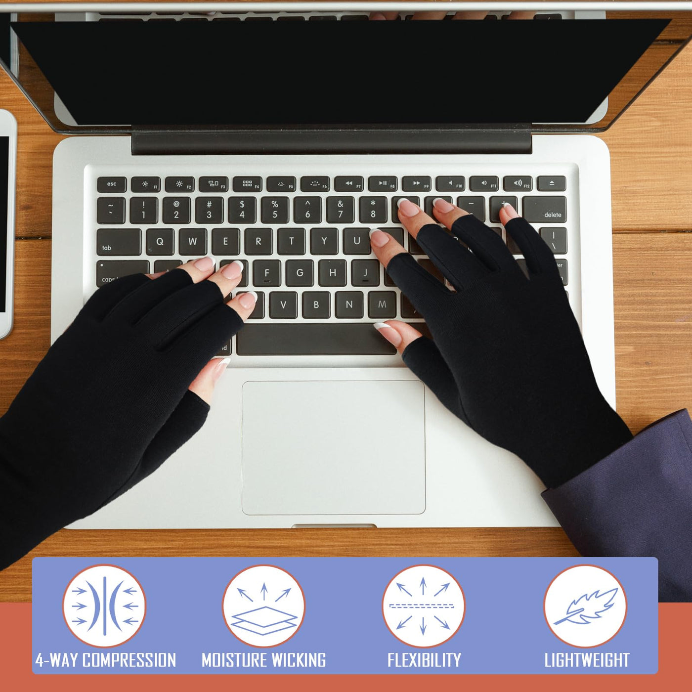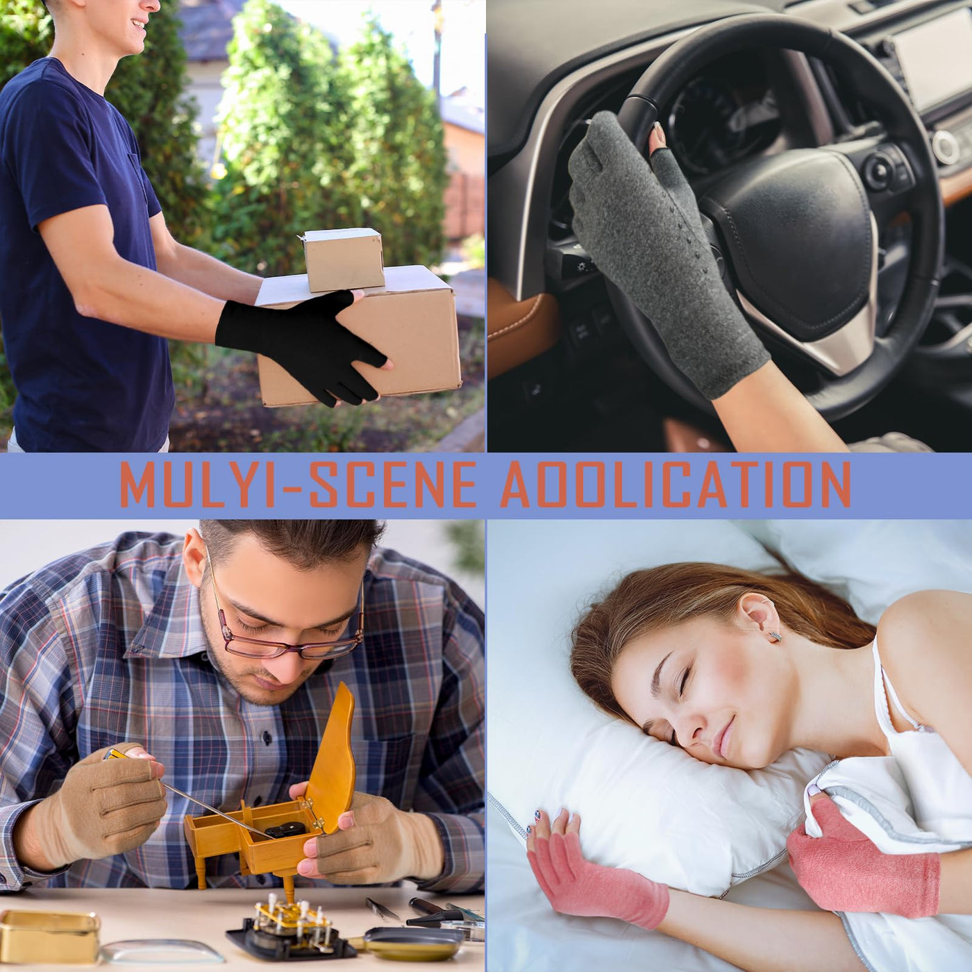 6 Pairs Arthritis Compression Gloves for Women Men Fingerless Hand Compression Gloves for Typing, Driving and Work