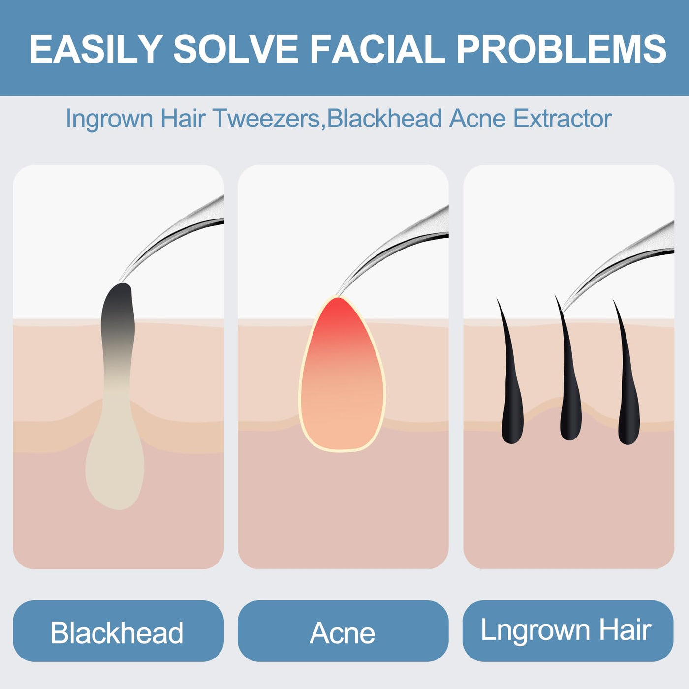 - Non-slip Handles:Black head remover for face work precisely, pimple popper tool blackhead tweezers has a non-slip feature, the diamond-shaped texture help us press better, ensuring every step can be done with best control, avoid pimple extractor to harm the skin.