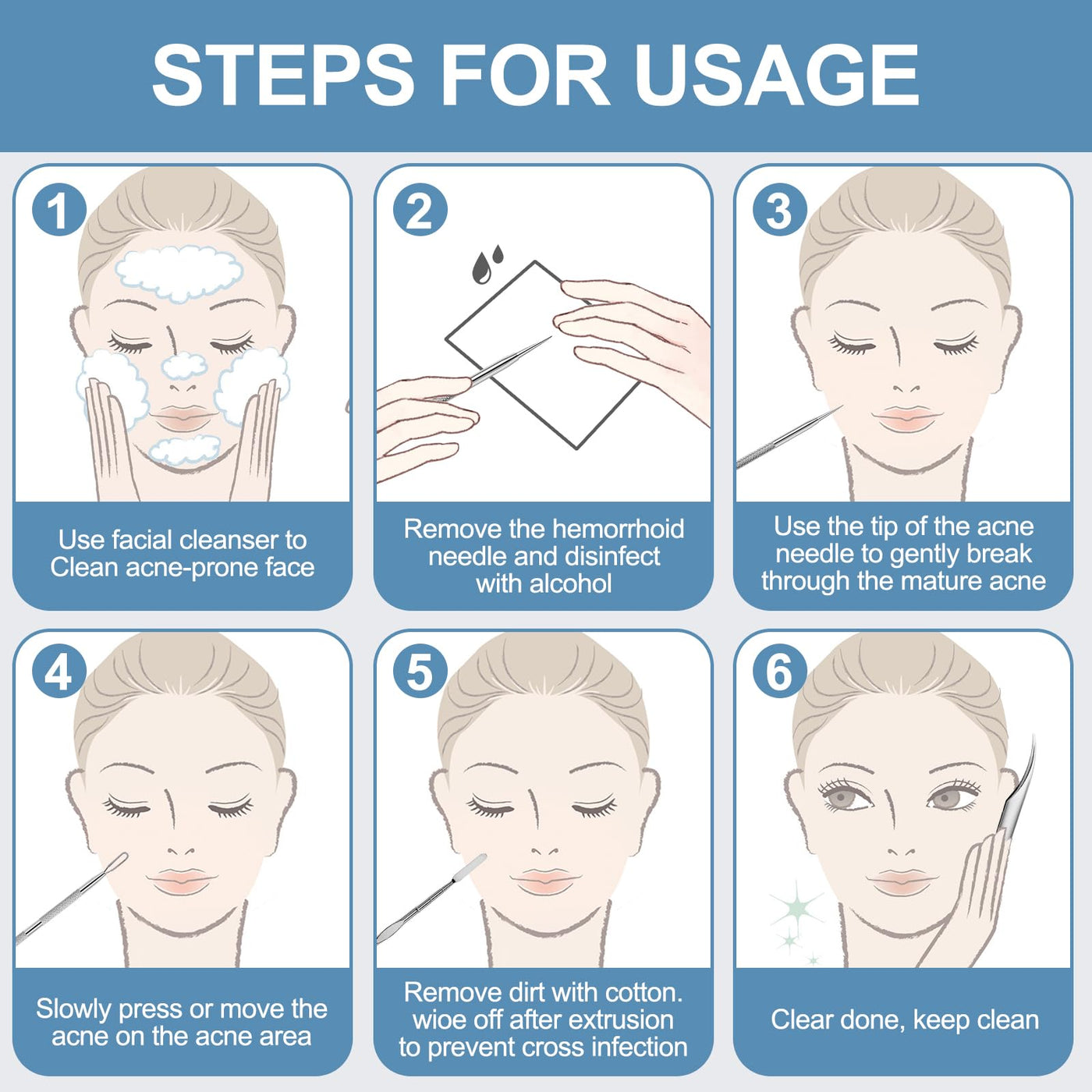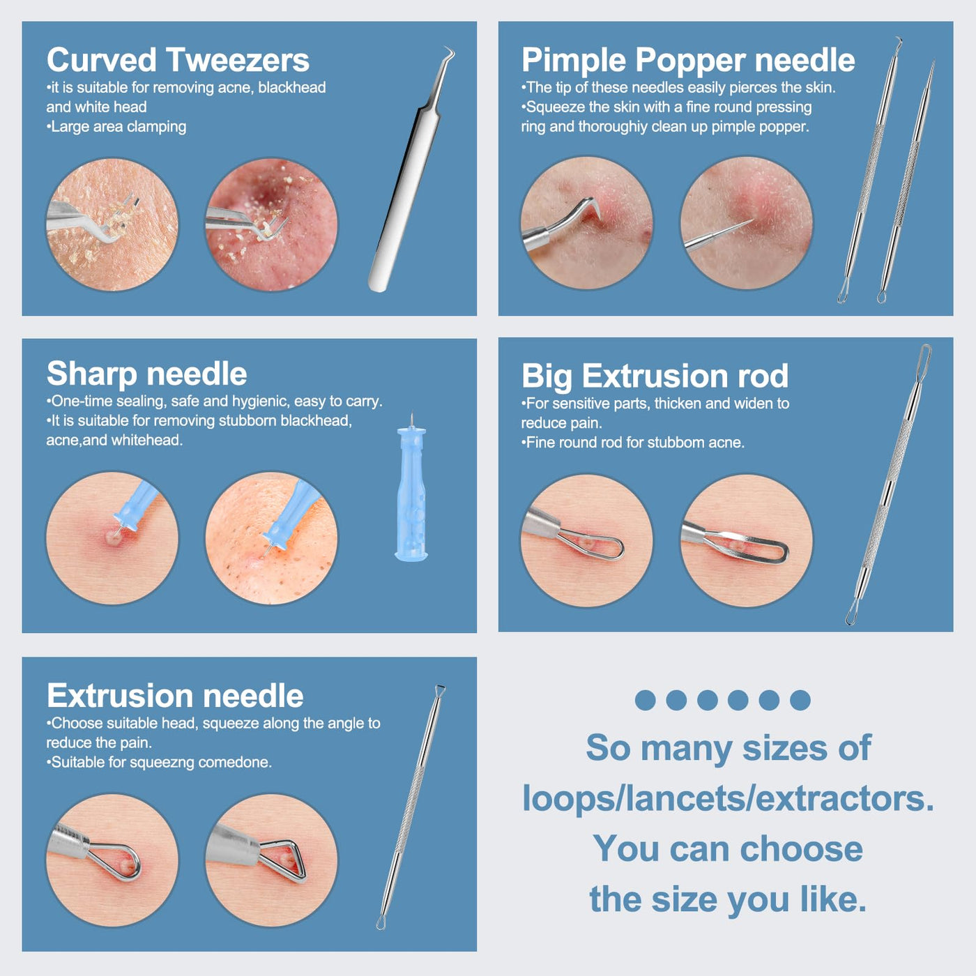 - Skin Care Tools with Portable Box:It keeps zit popper tool safe, clean.What's more, Mini box fits in our purse, bag, and pocket perfectly,easy for storage or transport. Note: Clean the acne tools extractor kit with medical alcohol fully before and after each use.
