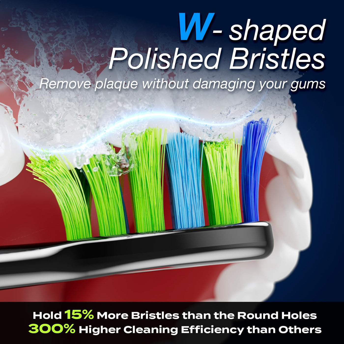- 8 Replacement Brush Heads, "W" Shape Design - Comes with 6 replacement brush heads to avoid order new replacement brush heads frequently. "W" shape design to suit teeth topography for thorough cleaning of gums and hard to reach areas. Notice: Gentle on your gum and blue indicator bristles fade in color to let you know when it's time to replace the brush head. Each brush head lasts 3 months so 8 will last for about 24 months.