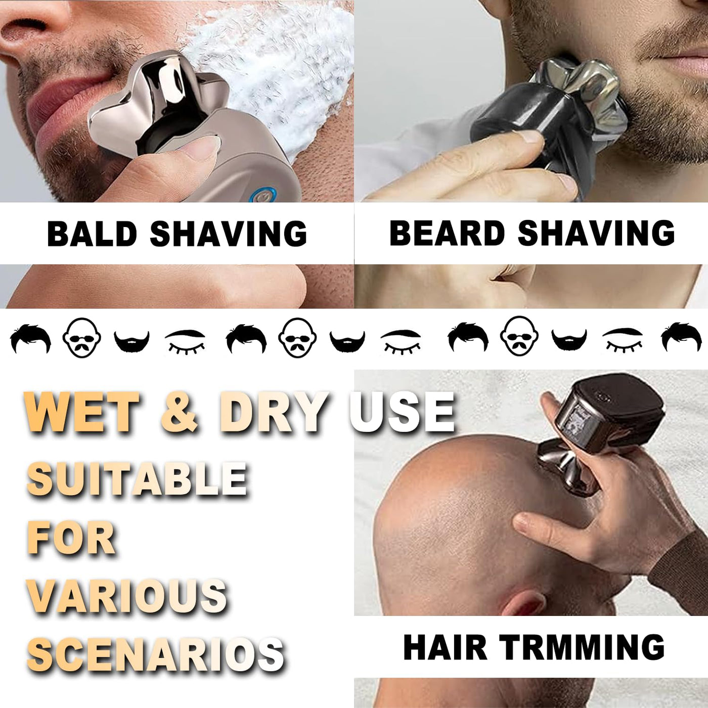 - [High Quality] The flexible floating heads of the blades rotate to follow the contours of your face, head, neck, and jaw, providing a closer and cleaner trimming experience without causing skin irritation. Strong structure, provide long service life. Safe and less irritation for most comfortable beard grooming