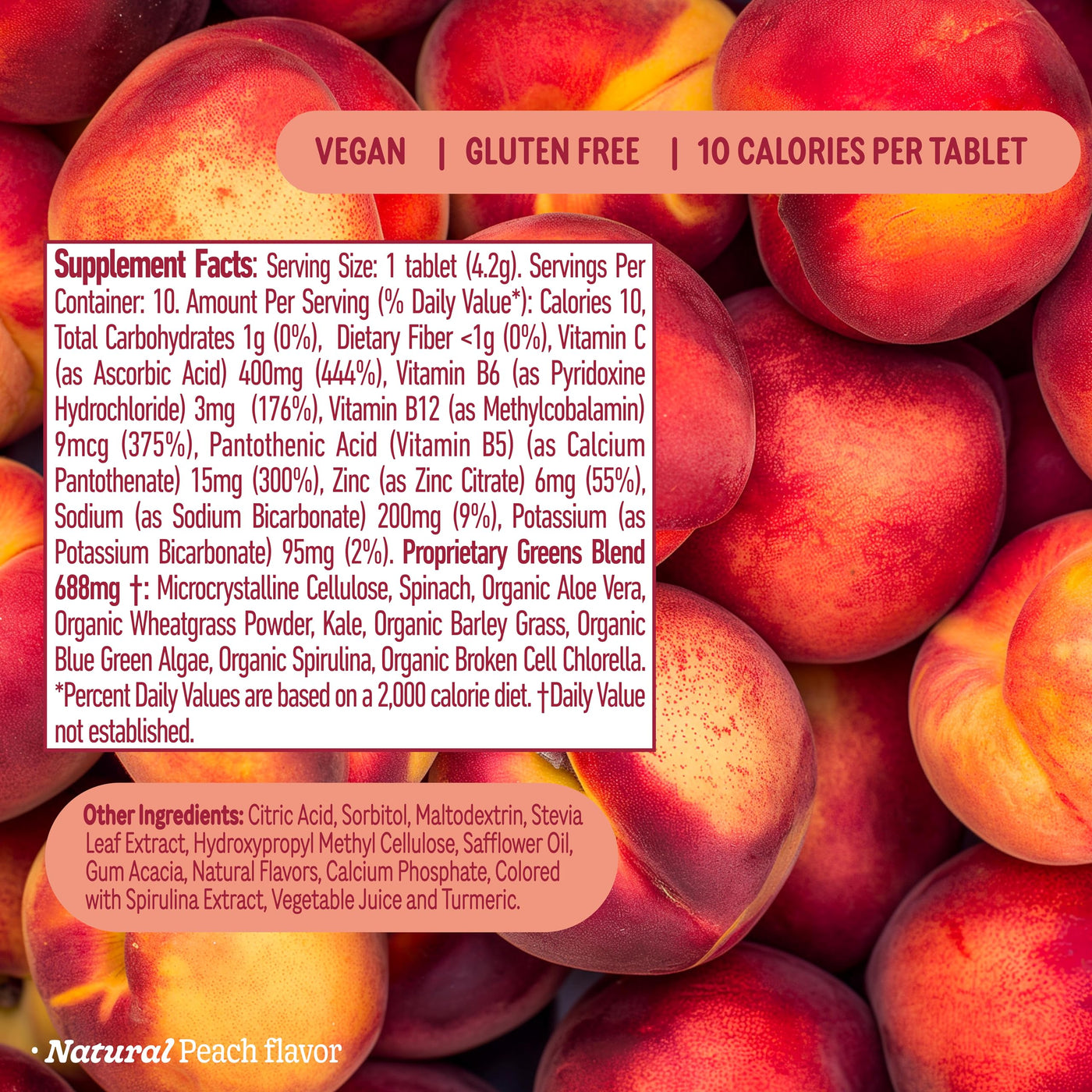 8Greens Supergreens Tablets | Super Greens Powder Superfood Tablet, Metabolism Immunity & Focus, Daily Greens Effervescent Tablets, Organic: Aloe Vera, Spirulina, Chlorella, Peach, 10 Servings
