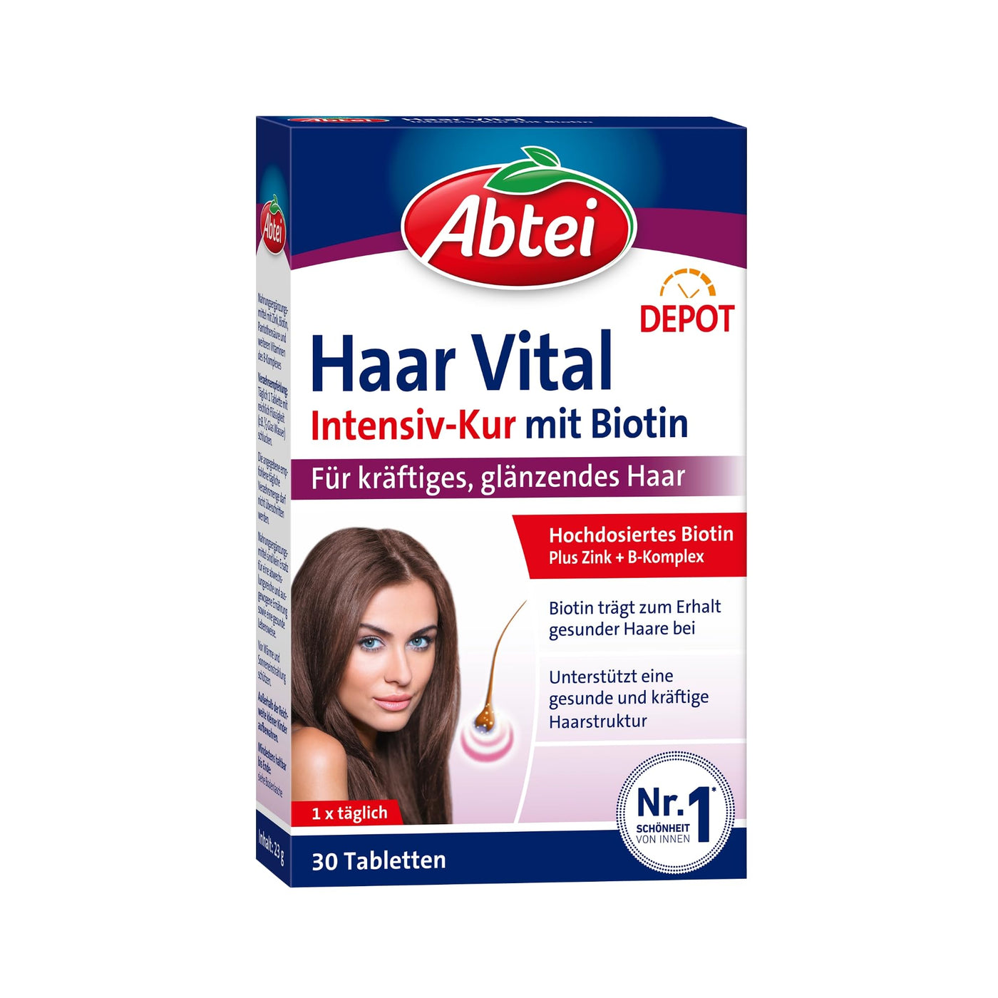 Abtei Hair Vital Intensive Treatment - High-dose biotin, zinc and vitamin B complex with depot effect - for strong, shiny hair - vegan - 30 tablets