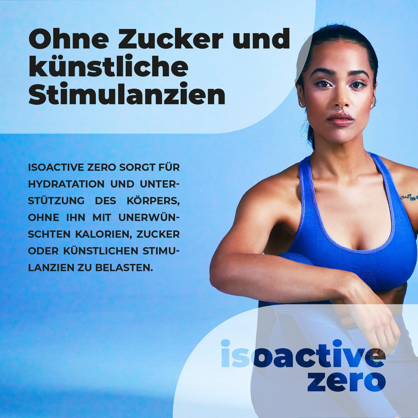 - Without sugar and artificial stimulants: ISOACTIVE ZERO provides hydration and support to the body without burdening it with unwanted calories, sugar or artificial stimulants.