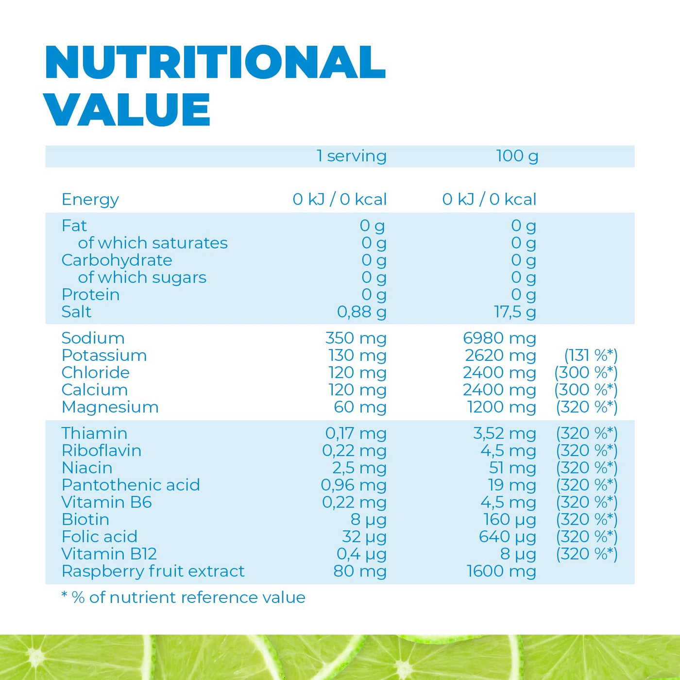- Important Electrolytes: Contains essential electrolytes such as sodium, potassium, magnesium, calcium and chloride that support the body's water-electrolyte balance during physical exertion.