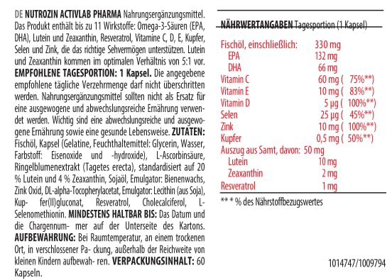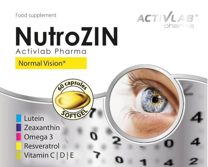 Activlab Pharma NutroZIN – 60 capsules for eye health | Supports Vision with Omega-3, Lutein, Resveratrol & Vitamins C, D, E | Reduces eye fatigue & Protects against retinal degeneration
