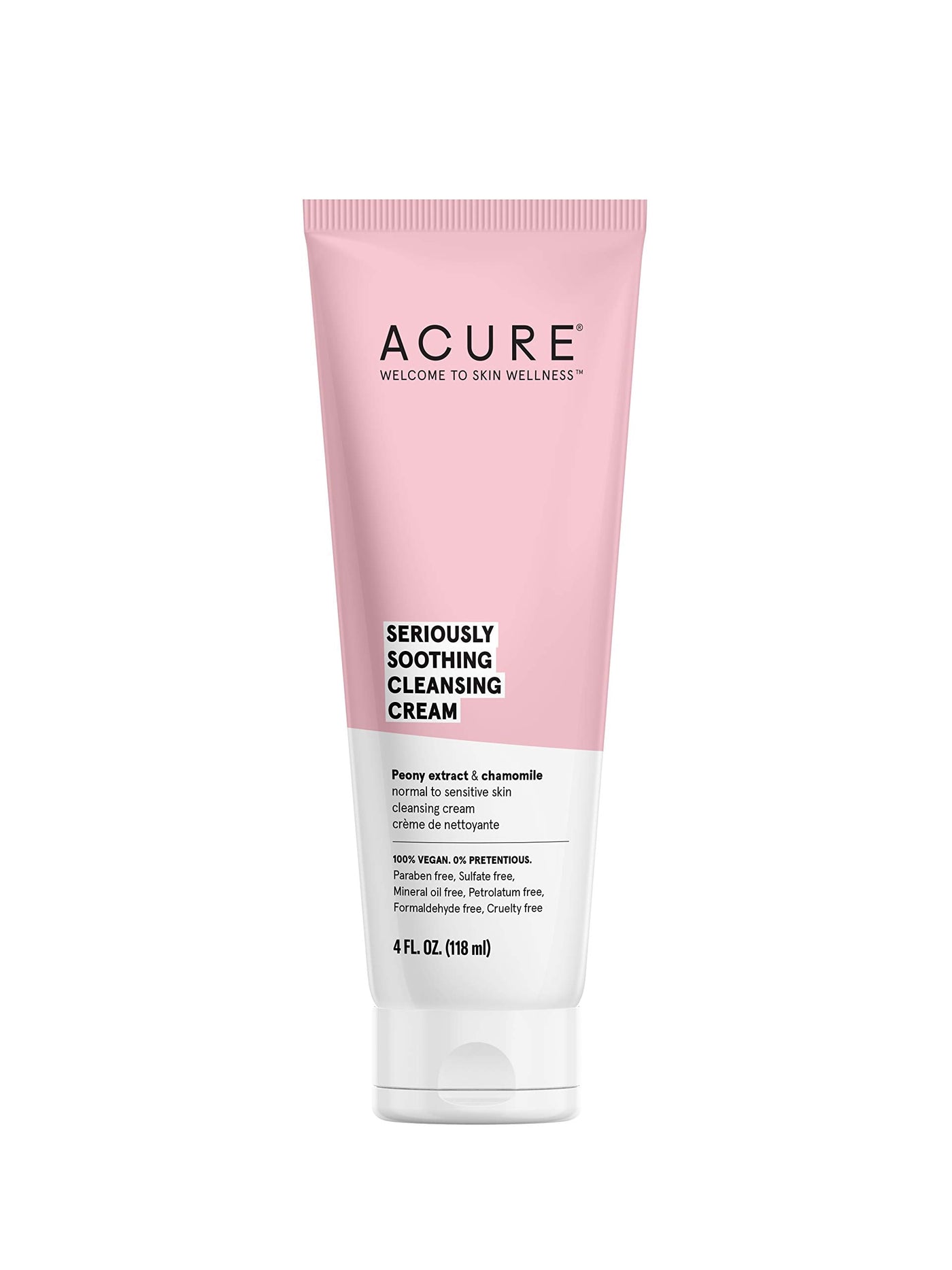ACURE Seriously Soothing Cleansing Cream | 100% Vegan | For Dry to Sensitive Skin | Peony Extract & Chamomille - Soothes , Hydrates & Cleanses | 4 Fl Oz
