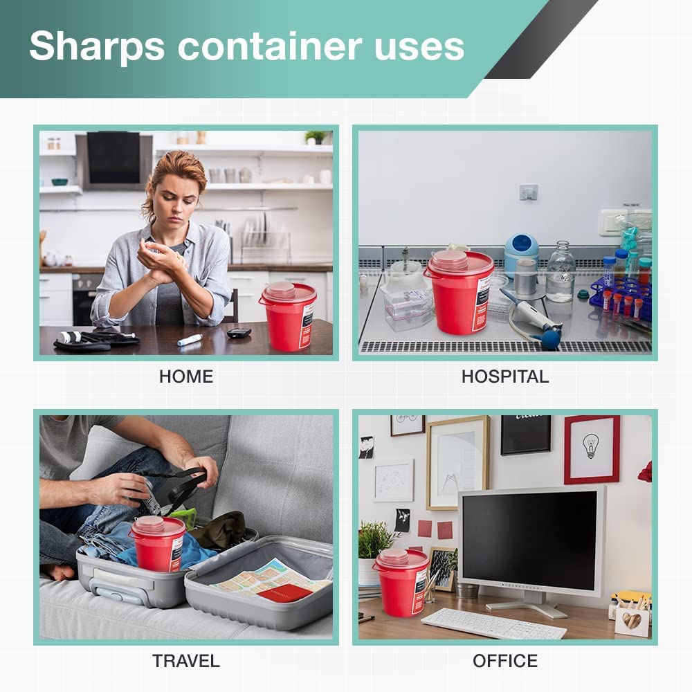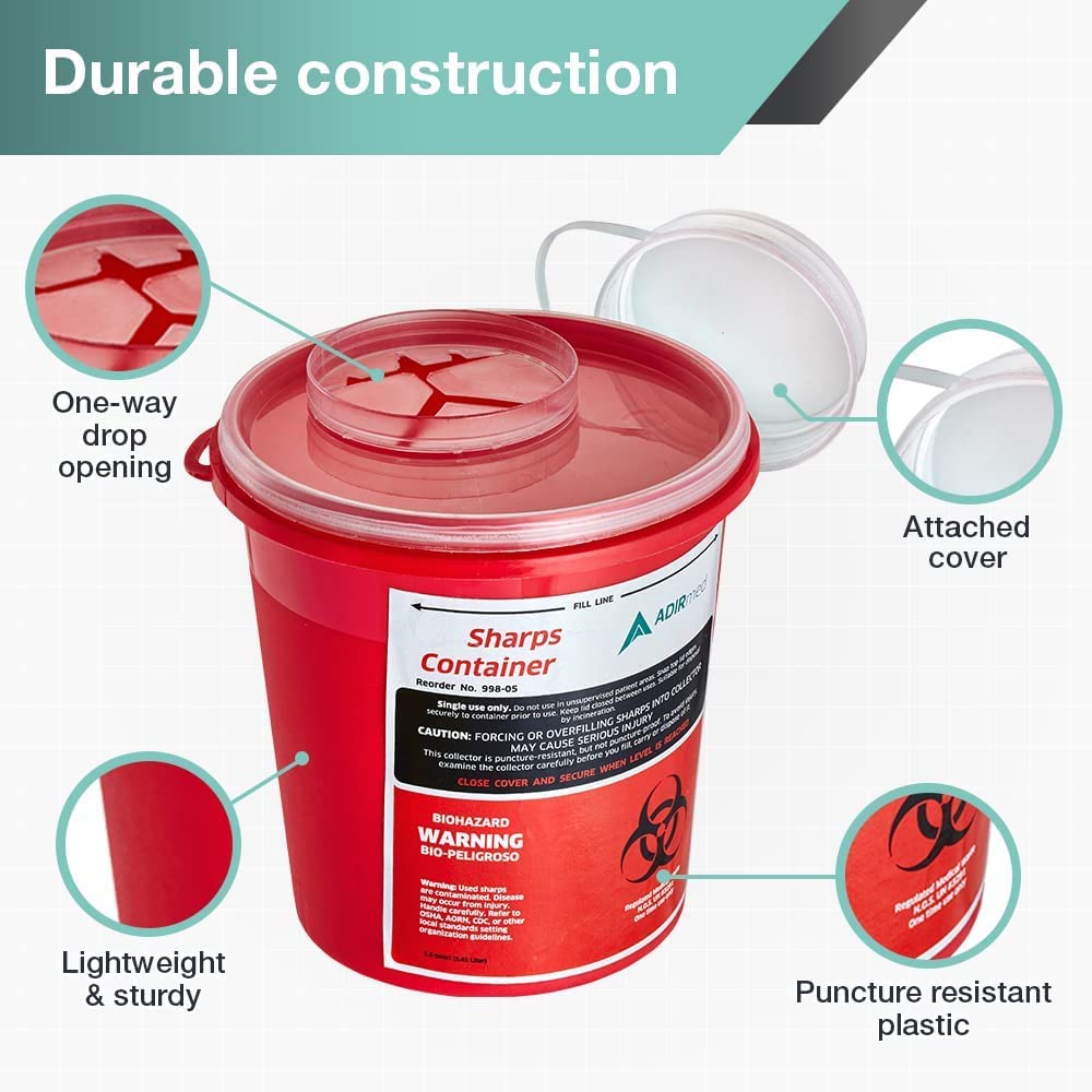 AdirMed Sharps Disposal Container with Flip Open Lid - Biohazard and Syringe Disposal Container - Ideal for Home, Clinic, Office, Barber Use with Flip-Open (1.5 Quart, Round)