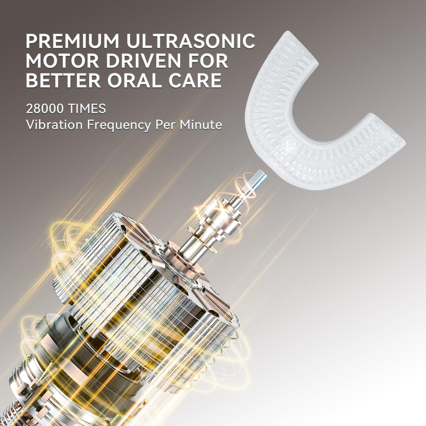 Adult Sonic Automatic Electric Toothbrush, 360° Oral Cleaning Stain Whitening, IPX7 Waterproof Rechargeable, u-Shape Brush Head*3+Straight Handle Brush Head*2, Suitable for Travel or Home Use