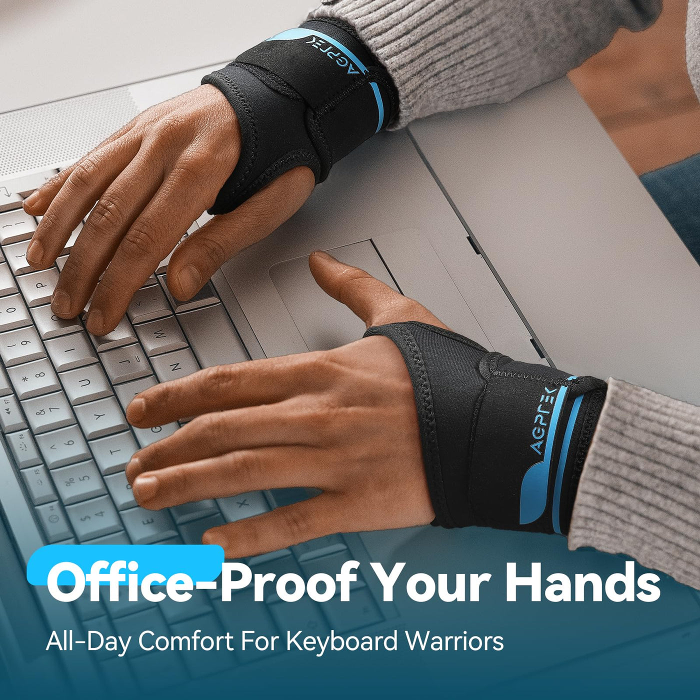 AGPTEK 2 Pack Wrist Hand Brace for Mild Carpal Tunnel Syndrome Arthritis Tendonitis Pain Relief, Adjustable Wrist Support for Weightlifting, Gym, Wrok, Sports, Daily Use-1 Pair