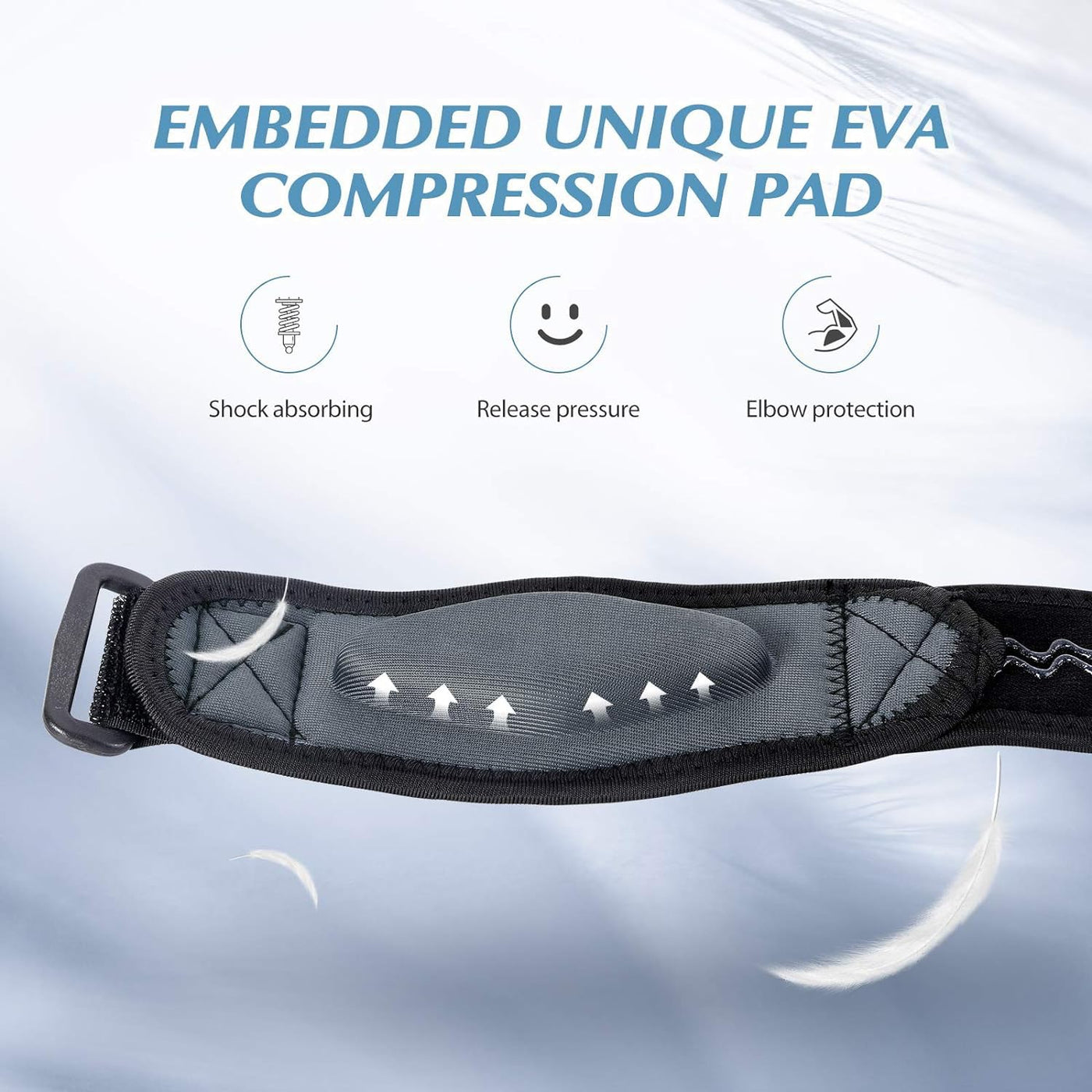 - Comfortable and BreathableTennis elbow brace with EVA elastic compression pad, the nylon strip will not damage the skin. The unique composition of rubber and nylon ensures unrivalled comfort. Protects the elbow and arm for perfect comfort
