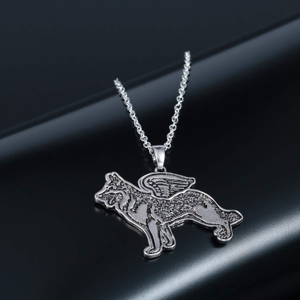 AILUOR German Shepherd Dog Necklace, Love Heart Dog Pendant Necklace Greyhound Dog Memorial Gift Wing