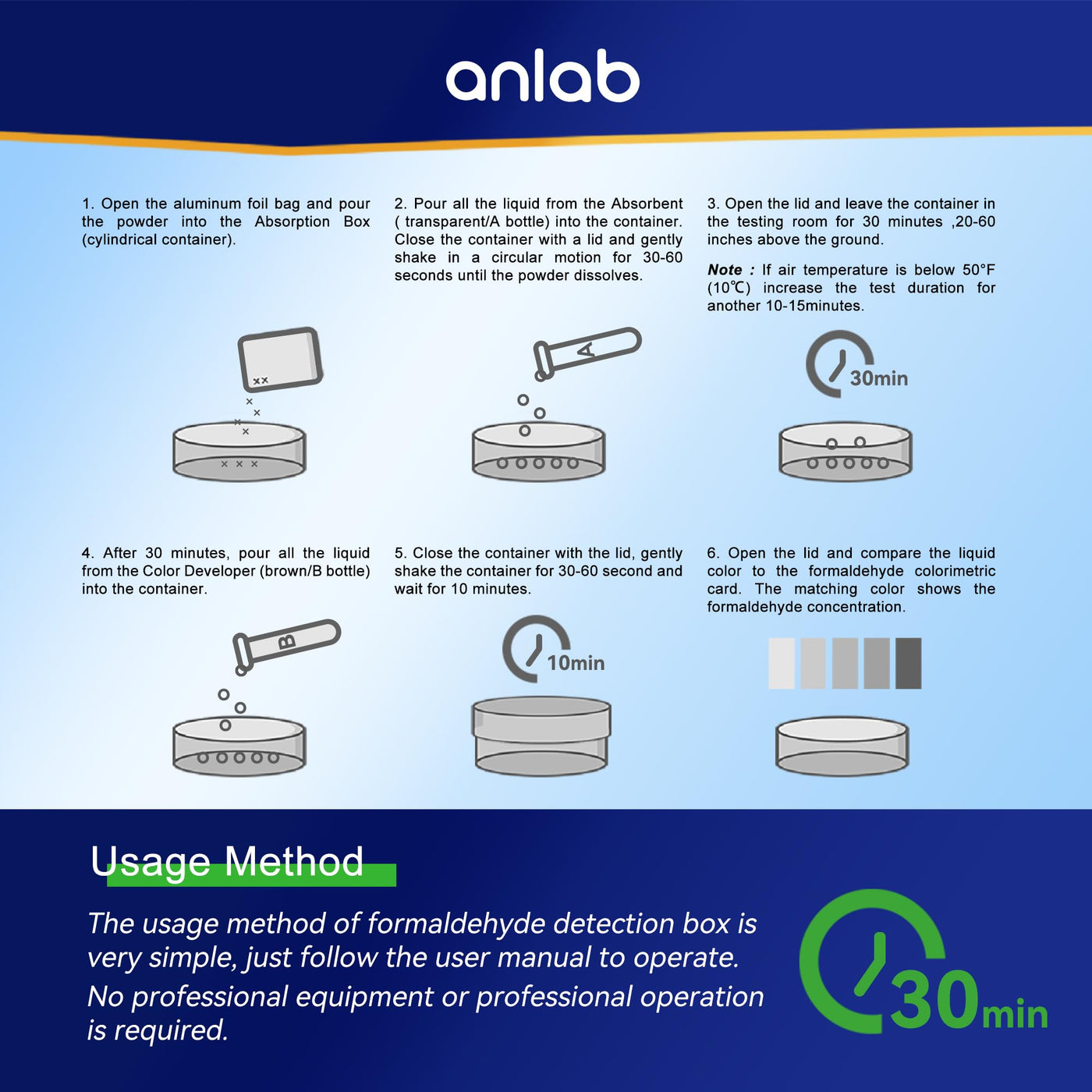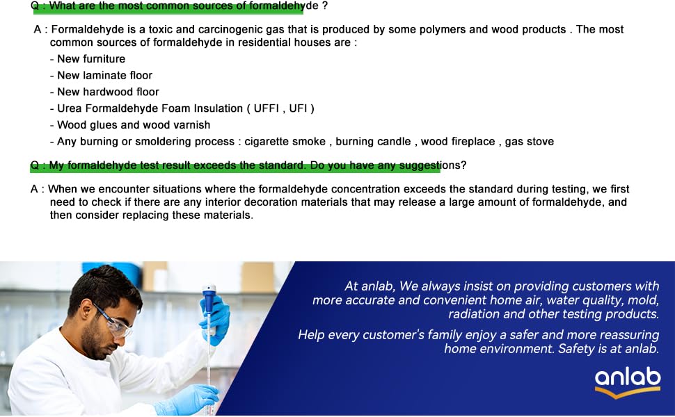 Test Air Quality: Designed to help keep your family safe, our DIY kit determines if Formaldehyde Gas (HCHO) is in your home. Suitable for areas up to 270 square ft, use only one kit per room. To inspect the whole house, use one kit per room.