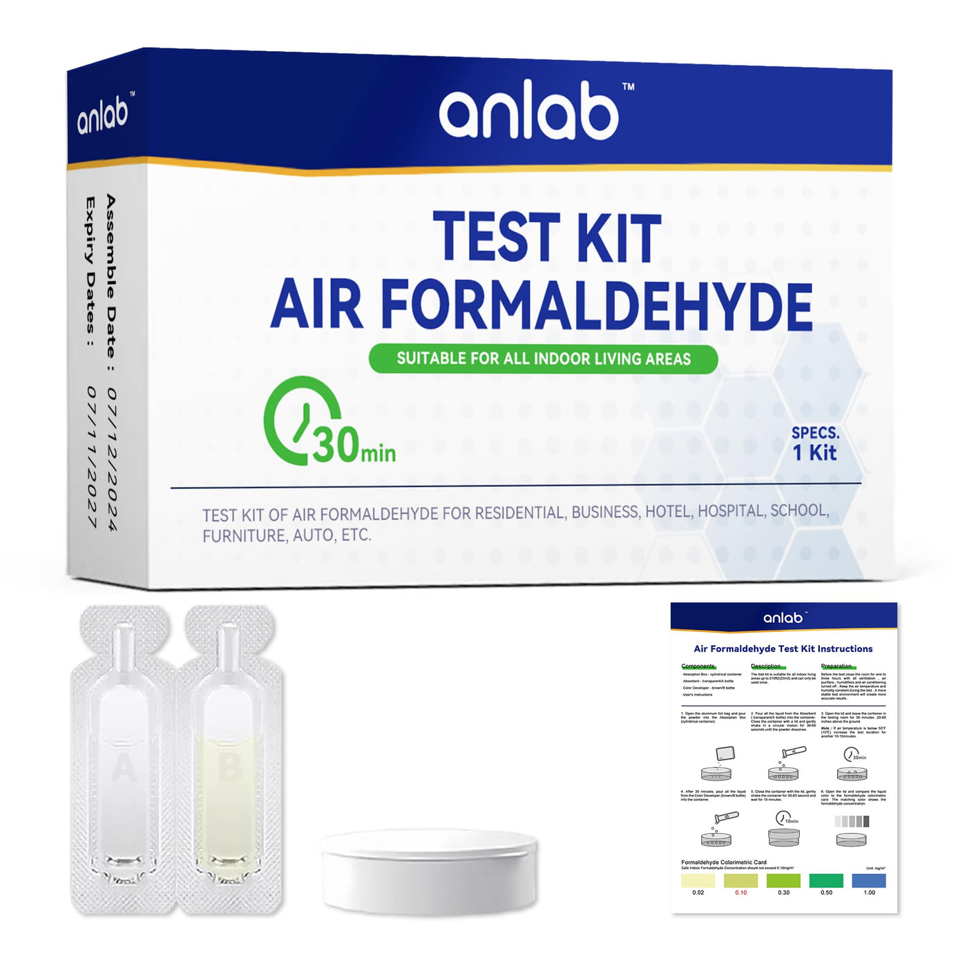 Air Formaldehyde (HCHO) DIY Test Kit - Used for Air Quality Testing, Detector Used for Home, Residential, Business, Hotel, Hospital, School, Furniture, Auto (Pack of 1) (3)