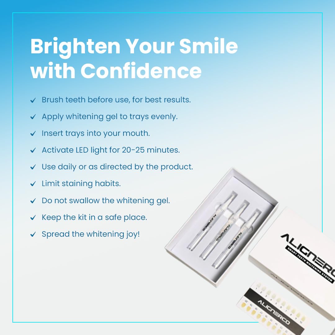 AlignerCo Wired LED Teeth Whitening Kit | Includes 3 (2ml) Whitening Gel Pens, 16-Bulb LED Light Mouthpiece | Gentle & Enamel Safe | Portable & Convenient Tooth Care
