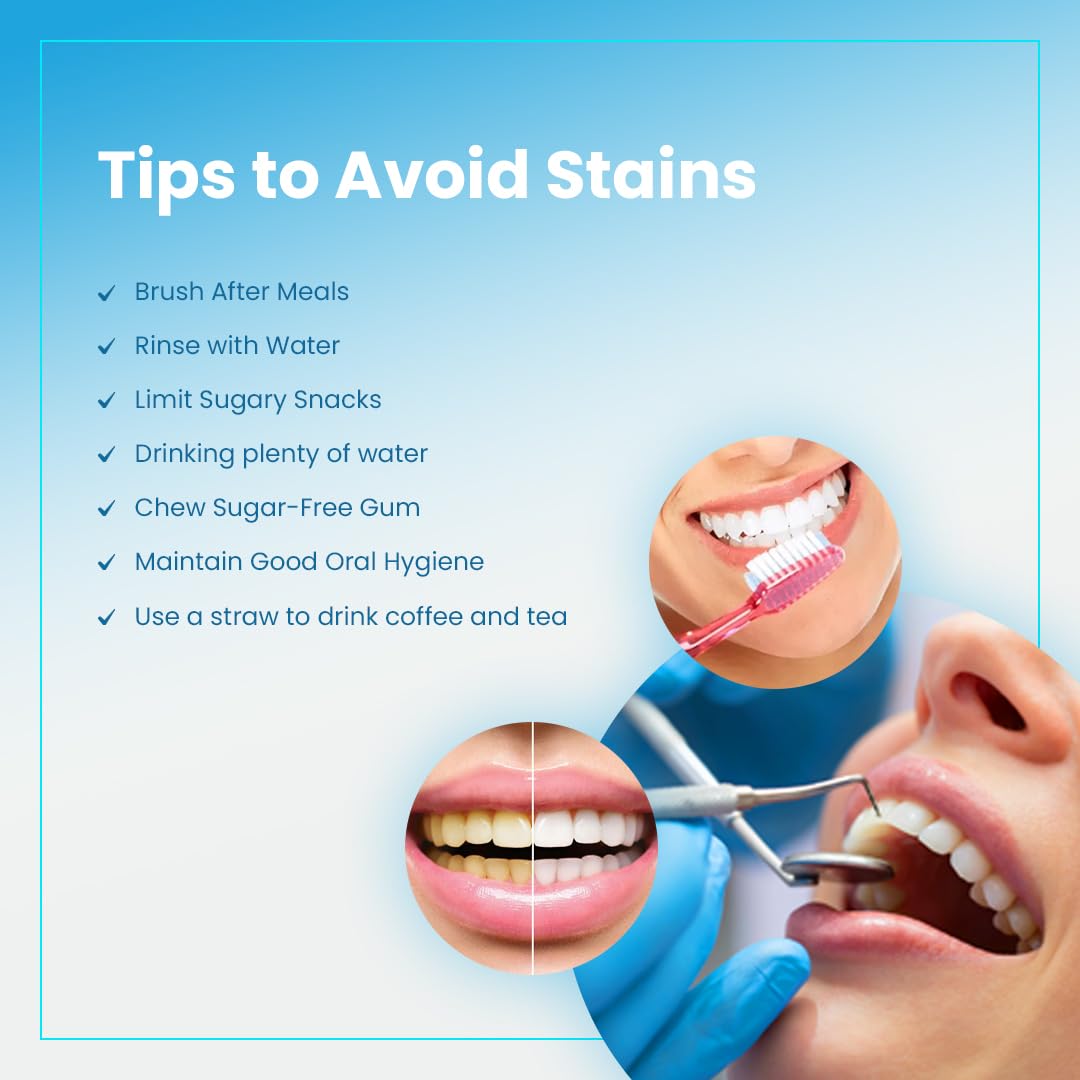 - Safe for Enamel: Our gentle tooth whitening gel effectively removes stubborn stains caused by coffee, tea, smoking, and more without compromising your enamel's health.