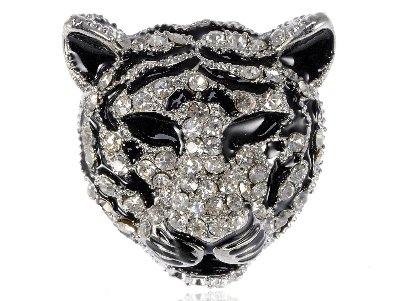 Alilang Black Silver Tiger Head King of The Forest Brooch Pin