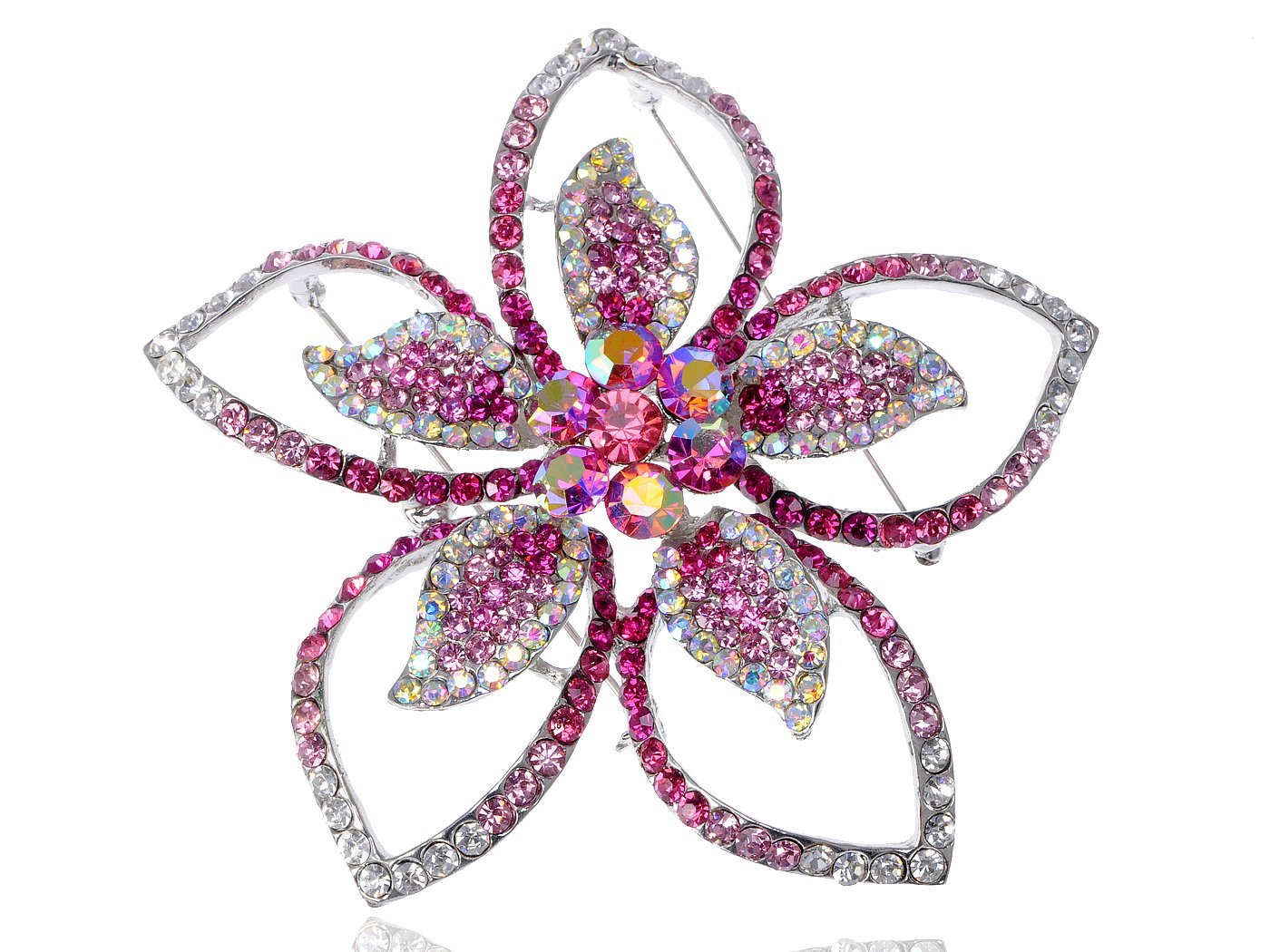 Alilang Lily Floral Flower Pink Crystal Rhinestone Fashion Statement Hawaiian Brooch Pin