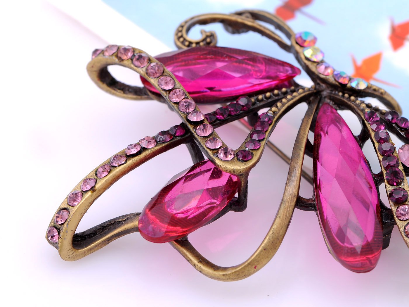 - Designed on antique silver toned alloy metal this ribbon butterfly brooch pin is decorated with lovely Synthetic Amethyst purple and clear rhinestone crystals