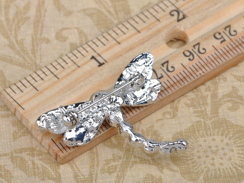 Alilang Silvery Tone Iridescent Rhinestones Dragonfly Insect Wings Brooch Pin