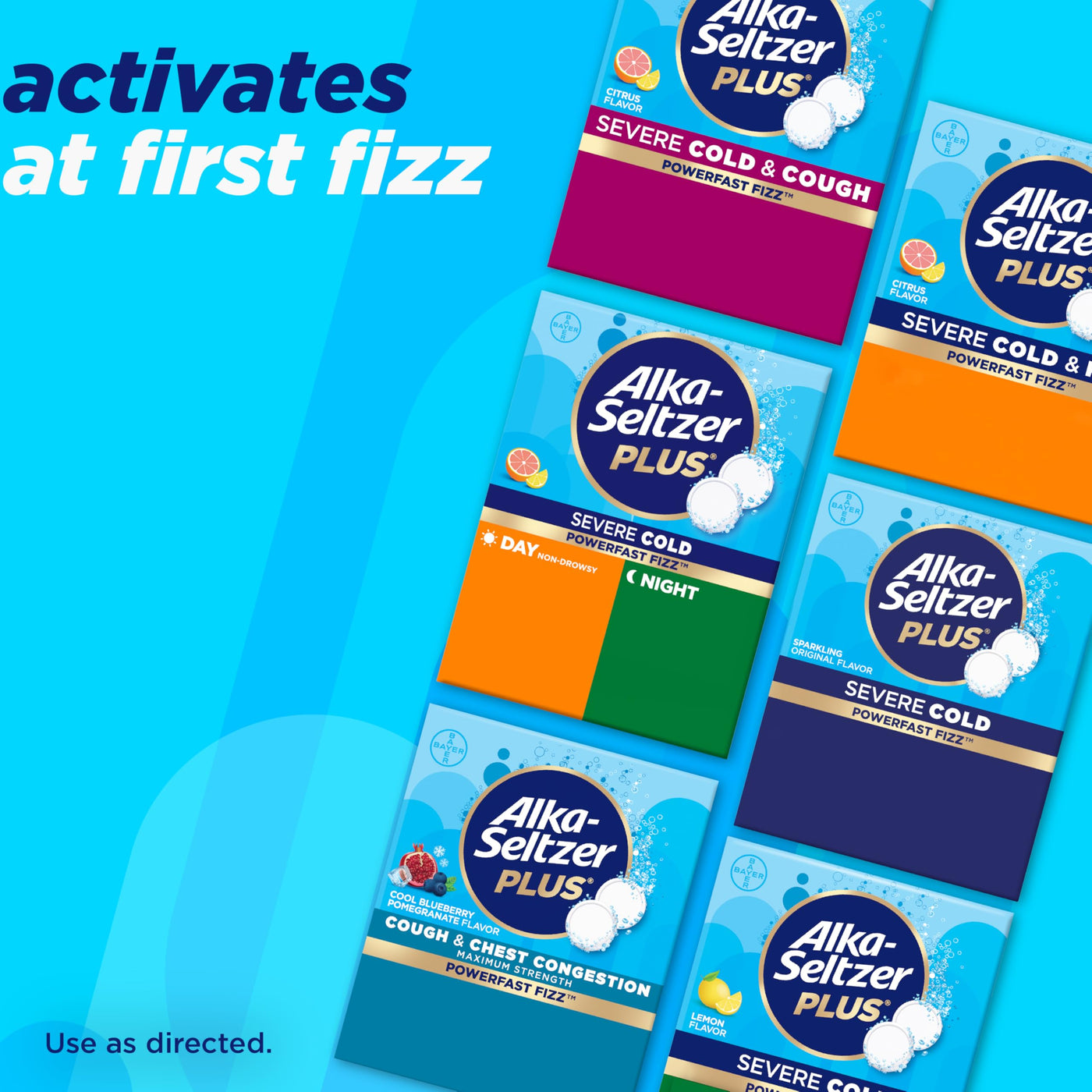 Alka-Seltzer Plus Severe, Cold & Flu Medicine, Citrus Effervescent Tablets, Nasal & Sinus Congestion, Sneezing, Runny Nose, Cough, Sore Throat 24 Count, Packaging May Vary