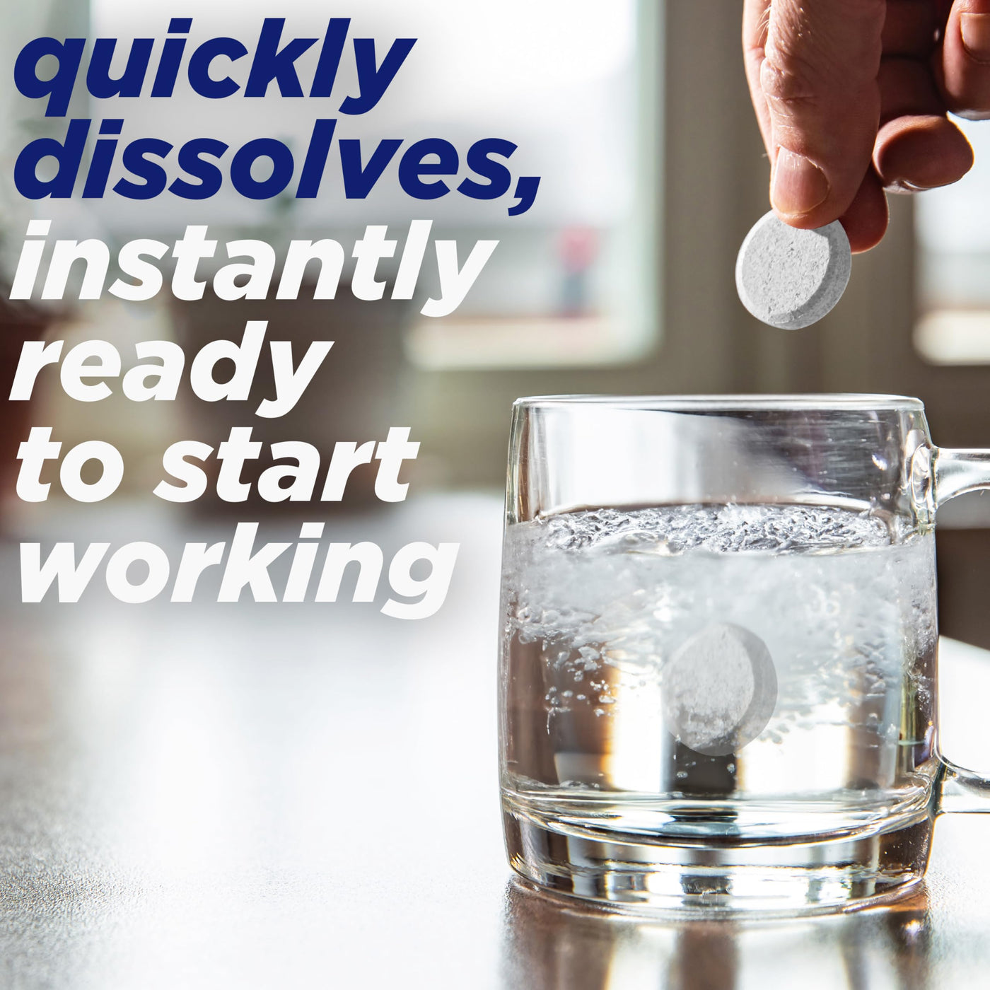 Alka-Seltzer Plus Cold & Flu Effervescent Tablets dissolve quickly in hydrating water and are instantly ready to start working. This formula has improved flavor, less sodium & is aspartame free. Each dose is individually wrapped and transforms in just 4oz of water into a liquid-fast medicine. After you drink the refreshing, sparkling solution, Alka-Seltzer Plus works quickly to relieve your worst cold symptoms: Nasal & Sinus Congestion, Sneezing, Runny Nose, Cough, Sore Throat, Fever, Headache and Body Aches & Pains