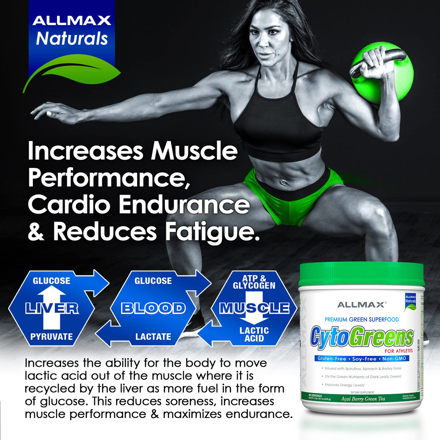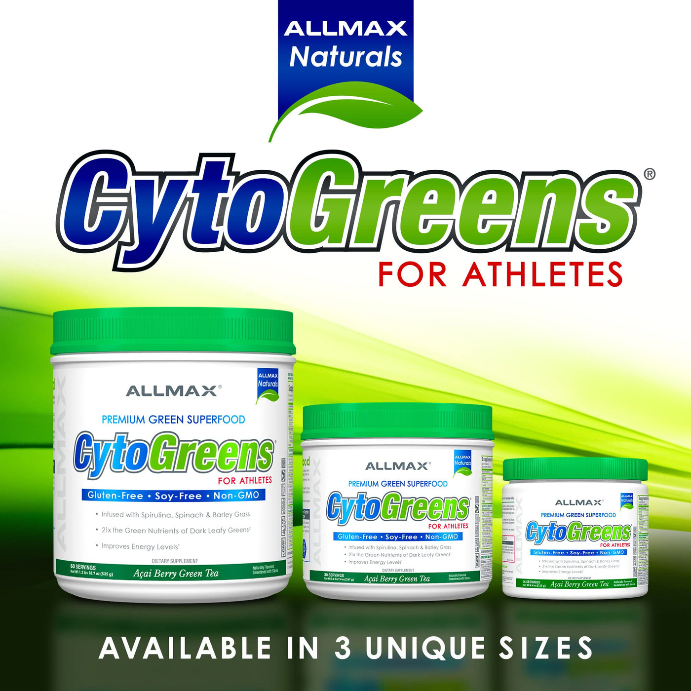 - Eat Clean, Be Strong With ALLMAX Super Greens: Cytogreens greens powder contains our exclusive nutrient-rich, Green Performance Matrix to enhance performance, recovery and help the body recycle energy more efficiently while exercising. Better still, you get the dark greens and color-rich, anti-oxidant berry nutrients your body needs!