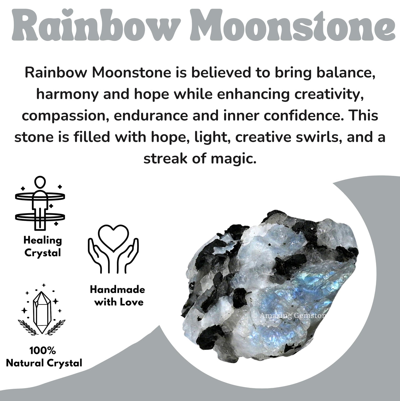 - Natural - You will receive authentic raw stones crystals, rainbow moonstone is thought to bring balance, harmony and hope while enhancing creativity, compassion, endurance and inner confidence.