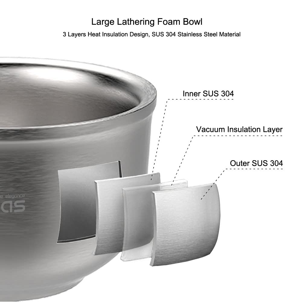 - HUGE BOWL: Textured & durable food-grade SUS 304 stainless steel; Unique craftsmanship inside is convenient for making a rich,thick,luxurious foam to shave with shaving soap cream gel, etc.