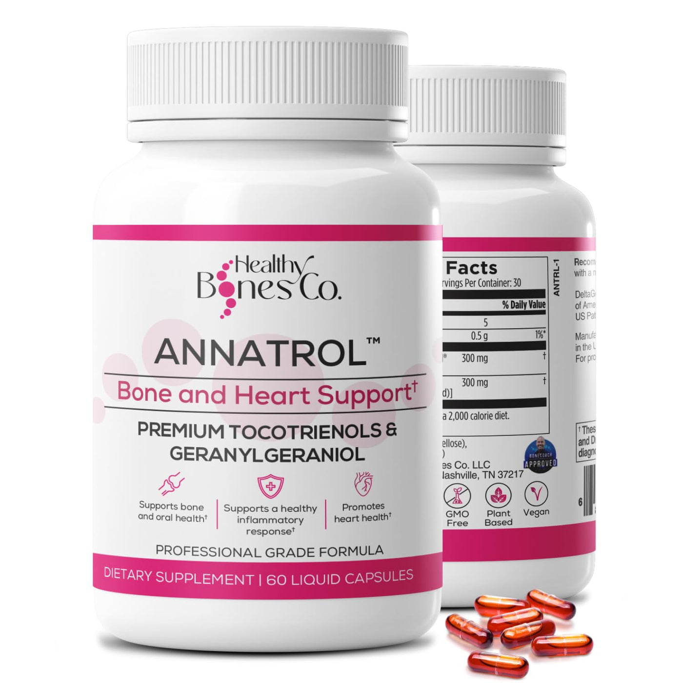Annatrol Bone Support, Premium Annatto Tocotrienols & Geranylgeraniol (GG) Vitamin E Supplement, 300mg Tocotrienols Vitamin E (DeltaGold Delta + Gamma) 300mg GG-Gold, Helps Promote Bone & Heart Health