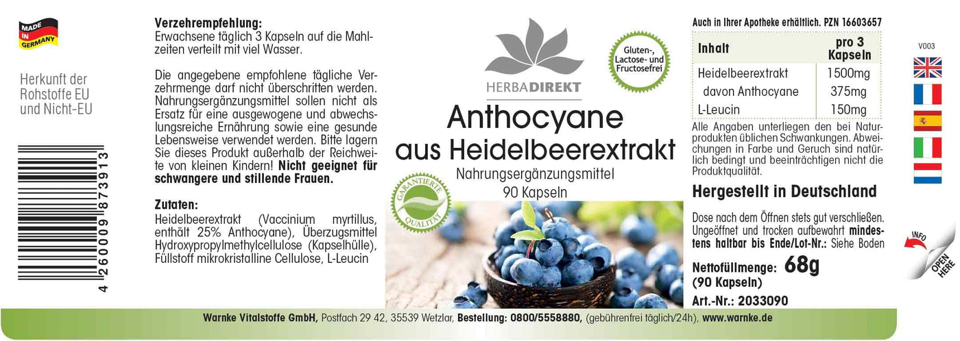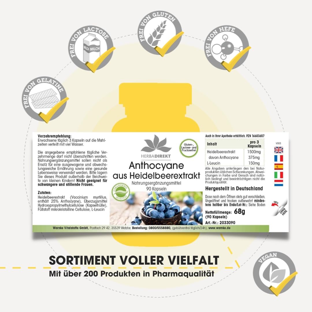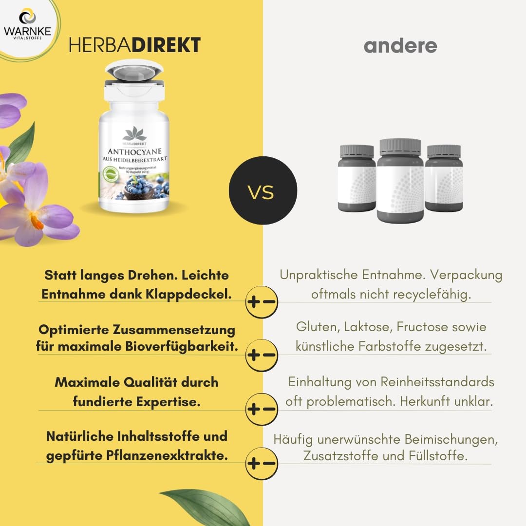 - Excellent price-performance ratio for German quality - Herbadirekt - ANTHOCYANES FROM BLUEBERRY EXTRACT 25%