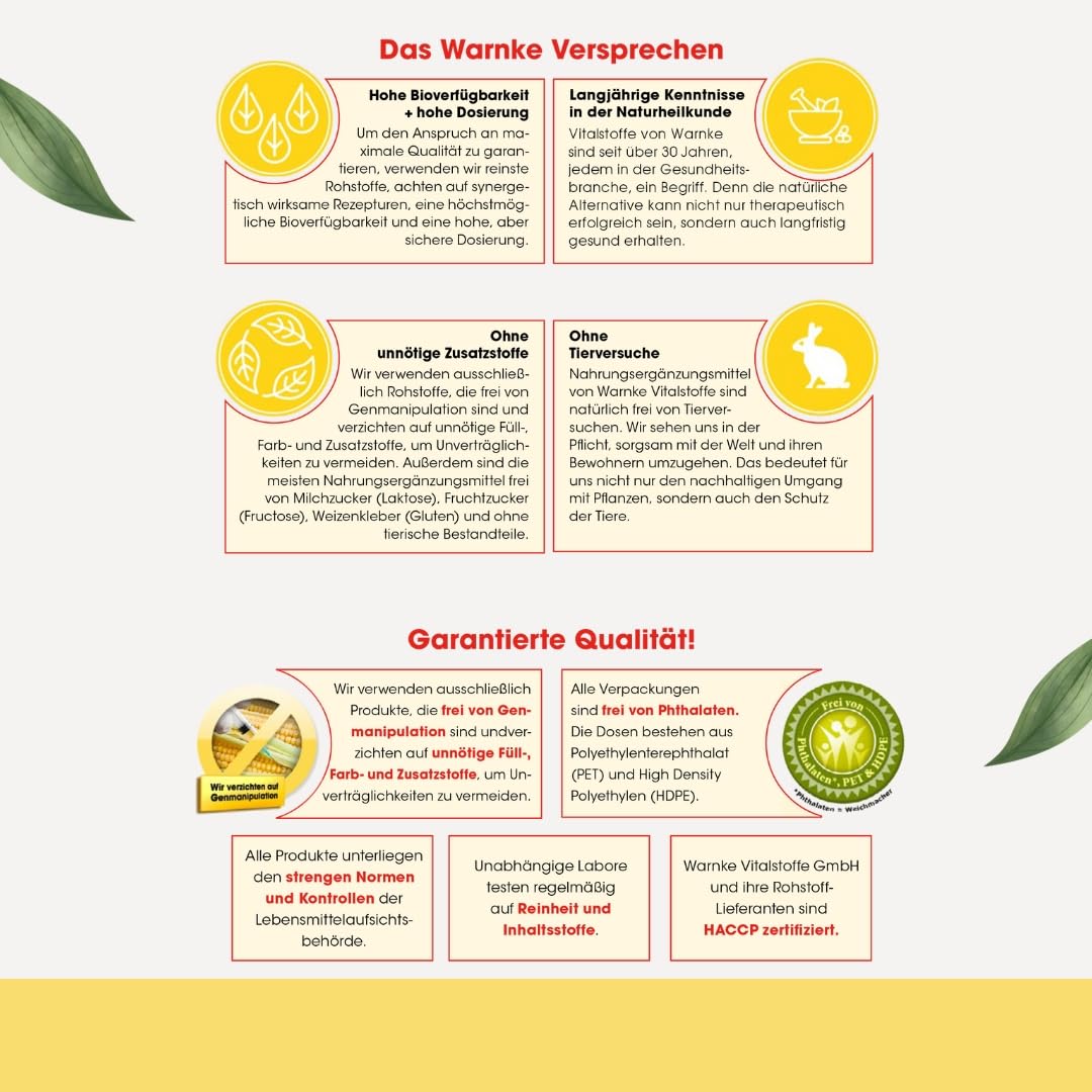- Quality and consumer friendliness: Our products comply with HACCP quality standards. Made in Germany. Raw materials from EU and non-EU countries. The optimized packaging with a sealed dosing lid ensures the long shelf life of your food supplements and their easy dosing