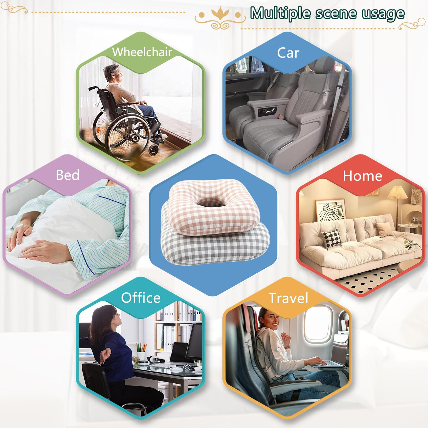 - ERGONOMIC DESIGNThis cushion has a circular hole in the middle to relieve the pressure on the coccyx and sciatic bones and protect the health of the spine. It is suitable for different parts of the body to relieve pain, disperse pressure, reduce discomfort from long-term sitting, and prevent the formation of bedsores.