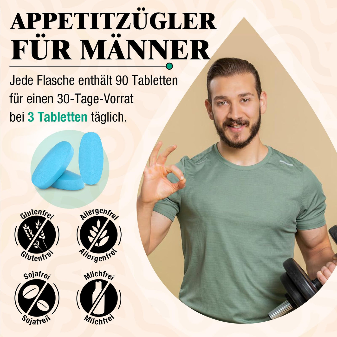 - Designed specifically for men: Our appetite suppressant tablets for men are rich in two natural fibers, glucomannan and chitosan. These fiber-rich ingredients absorb water and swell in the stomach. They deliver real results for men.