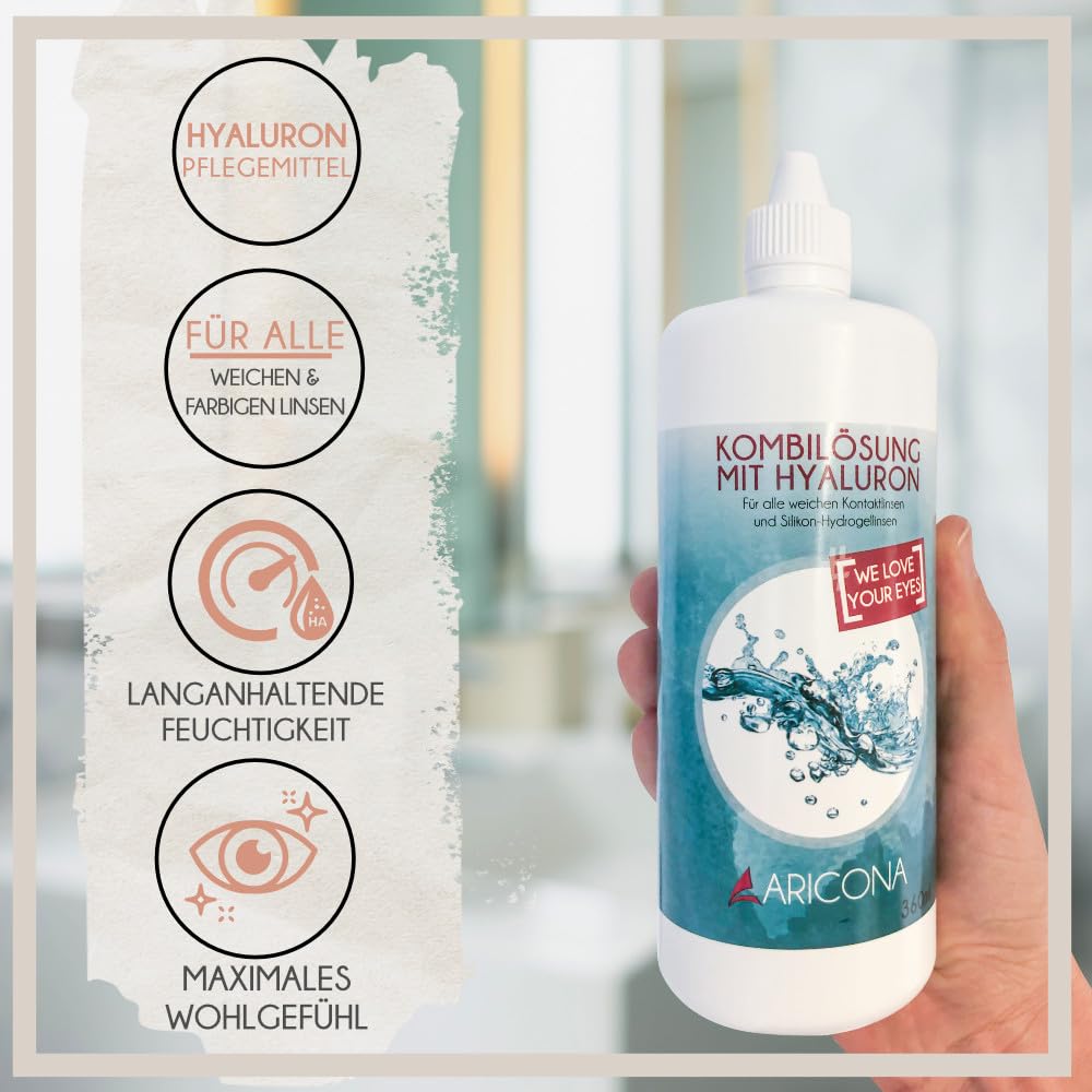 aricona contact lens liquid - 2 x 360 ml all-in-one combination solution with hyaluronic acid - contact lens liquid for soft lenses including container 360 ml (pack of 2)