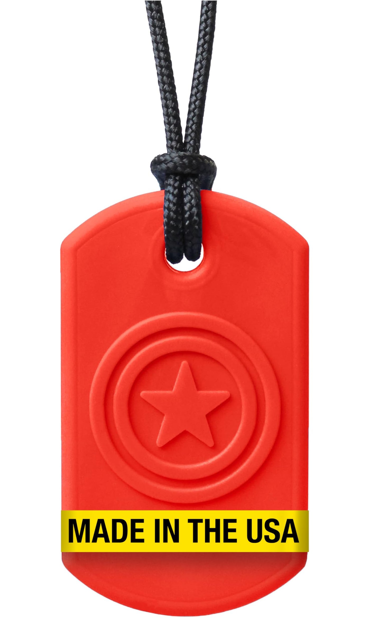 - TEXTURED DESIGN: The sensory chew necklace has a star-imprint pattern that adds a textured surface for varied sensory oral input. Measuring 2" L x 1.1" W x 0.5" Th, the wide design is ideal for chewing with premolars and/or front teeth.