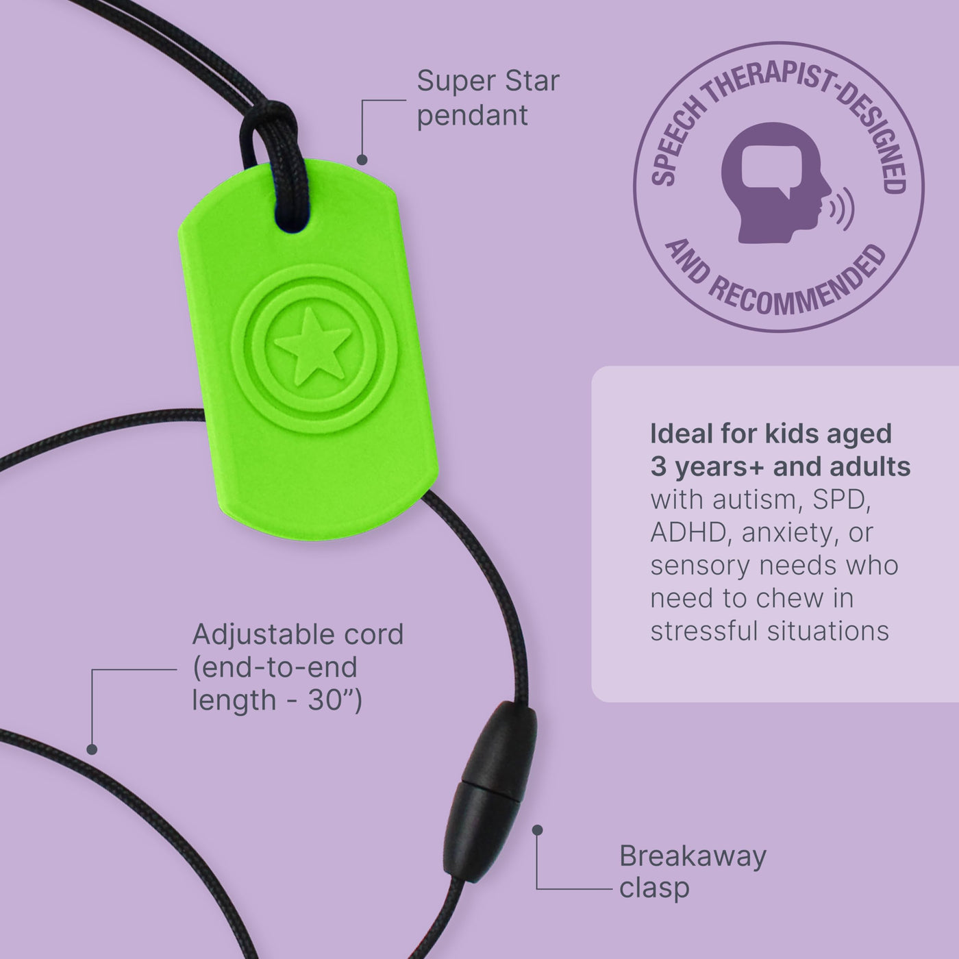 - SENSORY RELIEF: Developed by a speech-language pathologist (SLP), the ARK Super Star Chew Necklace provides sensory oral input for kids and adults who chew to stay calm and self-soothe.