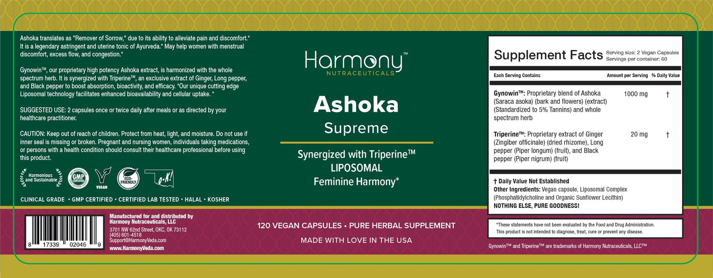 Ashoka Menstrual Feminine Wellness Ayurvedic Herbal Remedy 120 Capsules