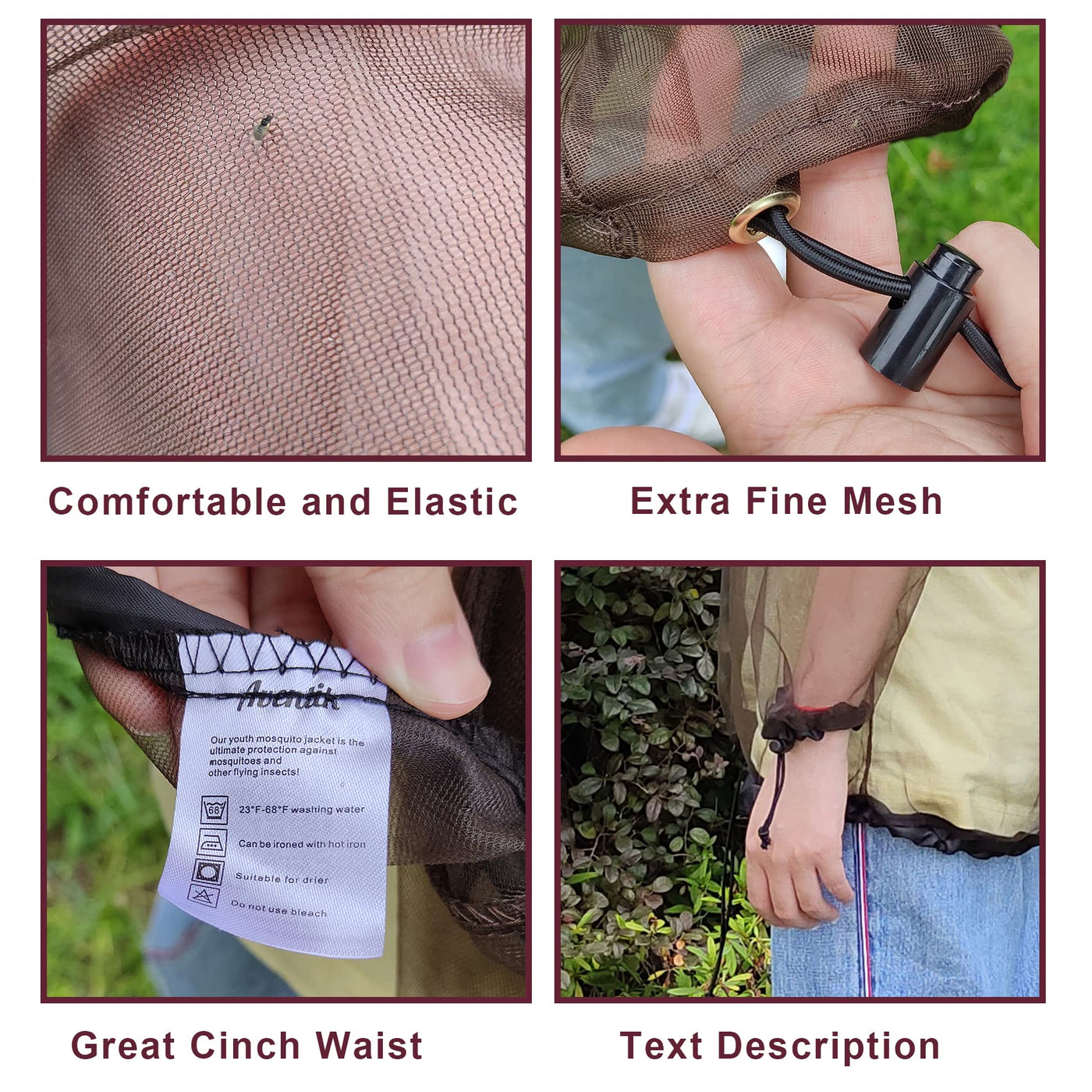 - Aventik super fine mesh with more than 2,000 holes per square inch youth mosquito jacket provides great protection from mosquito, bees, and other inserts. It also gives excellent UV protection in outdoor activities.
