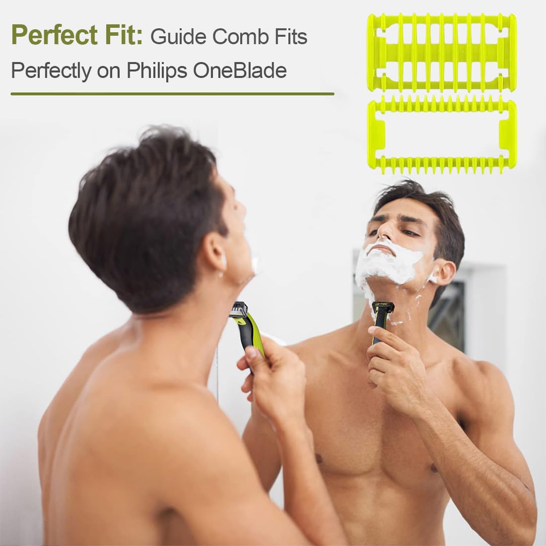 Package Contents:Designed as a 14-in-1 device, this trimmer & Shearing combs a wide range of trimming and styling needs, from beard care to body hair care. Practical and efficient: The new and improved Phillips one blade size is adjustable from 0.4mm to 10mm with 14 Adjustable lengths to meet your different hair length needs fulfill. VERSATILE COMPATIBILITY: This Philips one blade attachment is for One Blade QP2520 QP2530 QP2620 QP2630 QP2724, QP2834, QP2521 and others Models suitable. HIGH QUALITY:High quality and durable premium PC Material ensures that the hood slides very well on the skin and is in place good user experience guaranteed PRACTICAL: This phillips one blade is Suitable for trimming facial hair and body care. You can flexible between six different management combs with different Choose distances to precisely trim and comb different hair types, to meet your different needs (Note: If you have the Take the guide comb, you can press the blade with your hand to close prevent the blade from collapsing)