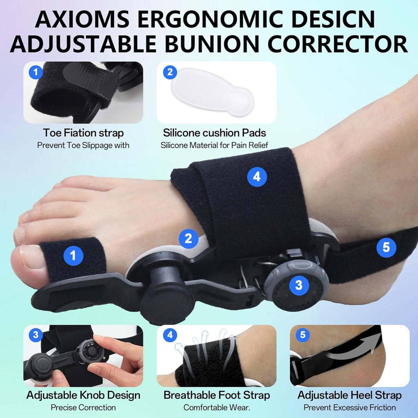 Axioms Bunion Corrector for Women Big Toe,Bunion Relief Straightener,Bunion Splint-Adjustable Knob Bunions Correction,Breathable & Anti-slip Suitable for Left Right Feet, Black 1Pack