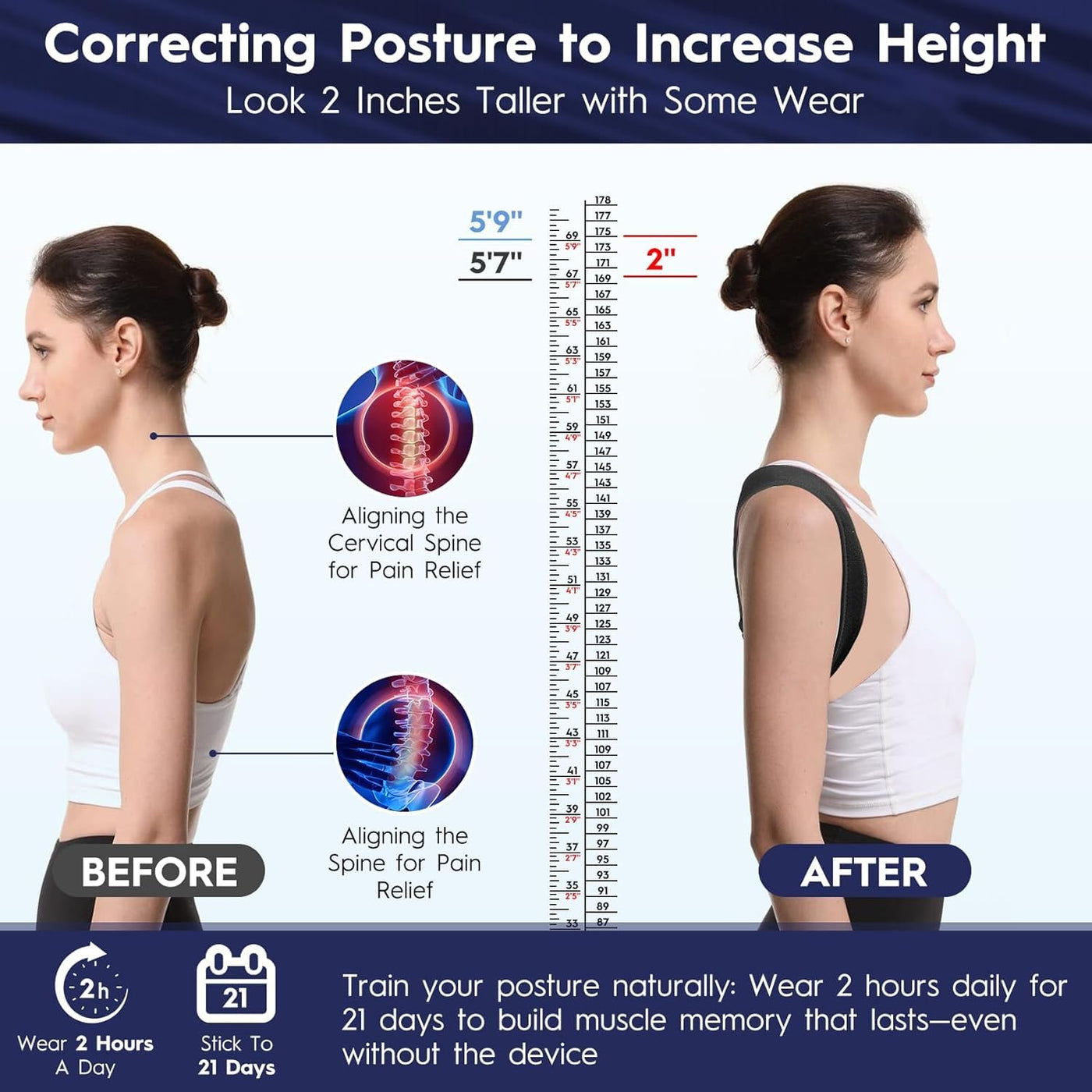 - Train Your Posture While You Work/Workout: More than just a back brace posture corrector: Our X-pattern tension system retrains muscle memory as you sit at your desk, walk the dog, or hit the gym. Users report standing 1-2" taller within weeks of wearing this posture brace(hello, confidence boost!) without uncomfortable underarm digging
