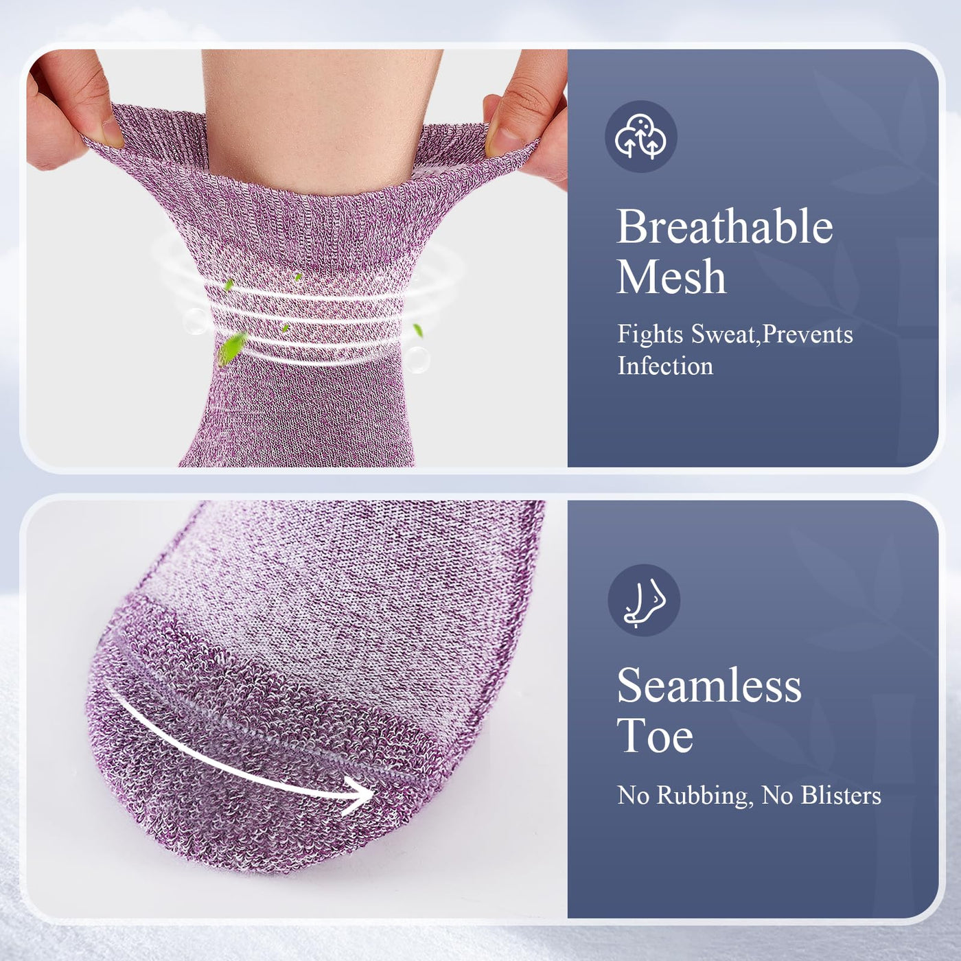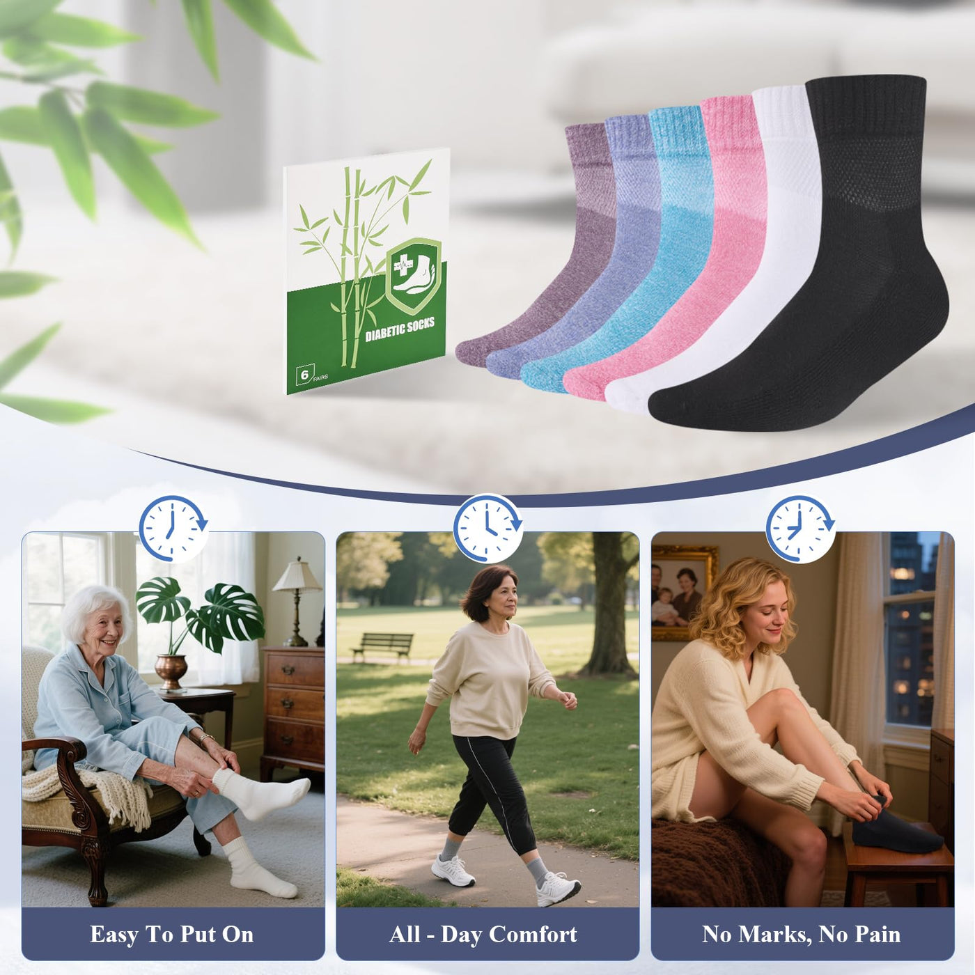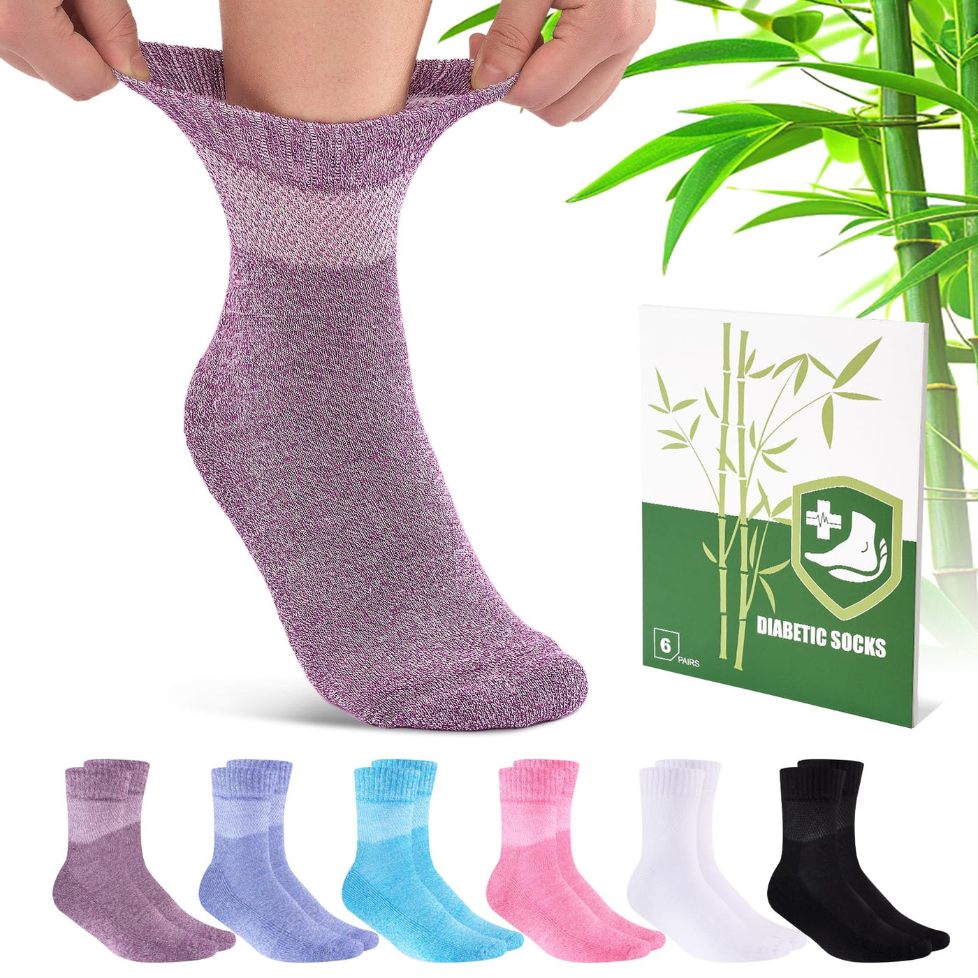 Bamboo Viscose Diabetic Socks for Women, 6 Pairs Non Binding Wide Top, Seamless Loose Cushion Socks for Swollen Feet