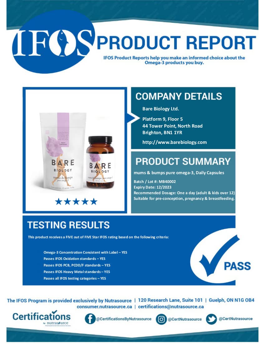 - WHY CHOOSE MUMS & BUMPS PURE OMEGA-3 FISH OIL?: Omega-3 has a crucial role in the development of your baby and your wellbeing. From trying to conceive right through to breastfeeding, omega-3 fatty acids are critical. Mums & Bumps has just been awarded Best Omega-3 capsules for pregnancy in the Mother & Baby Awards 2021 by online health and wellbeing website Hip & Healthy.